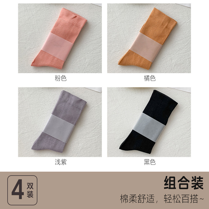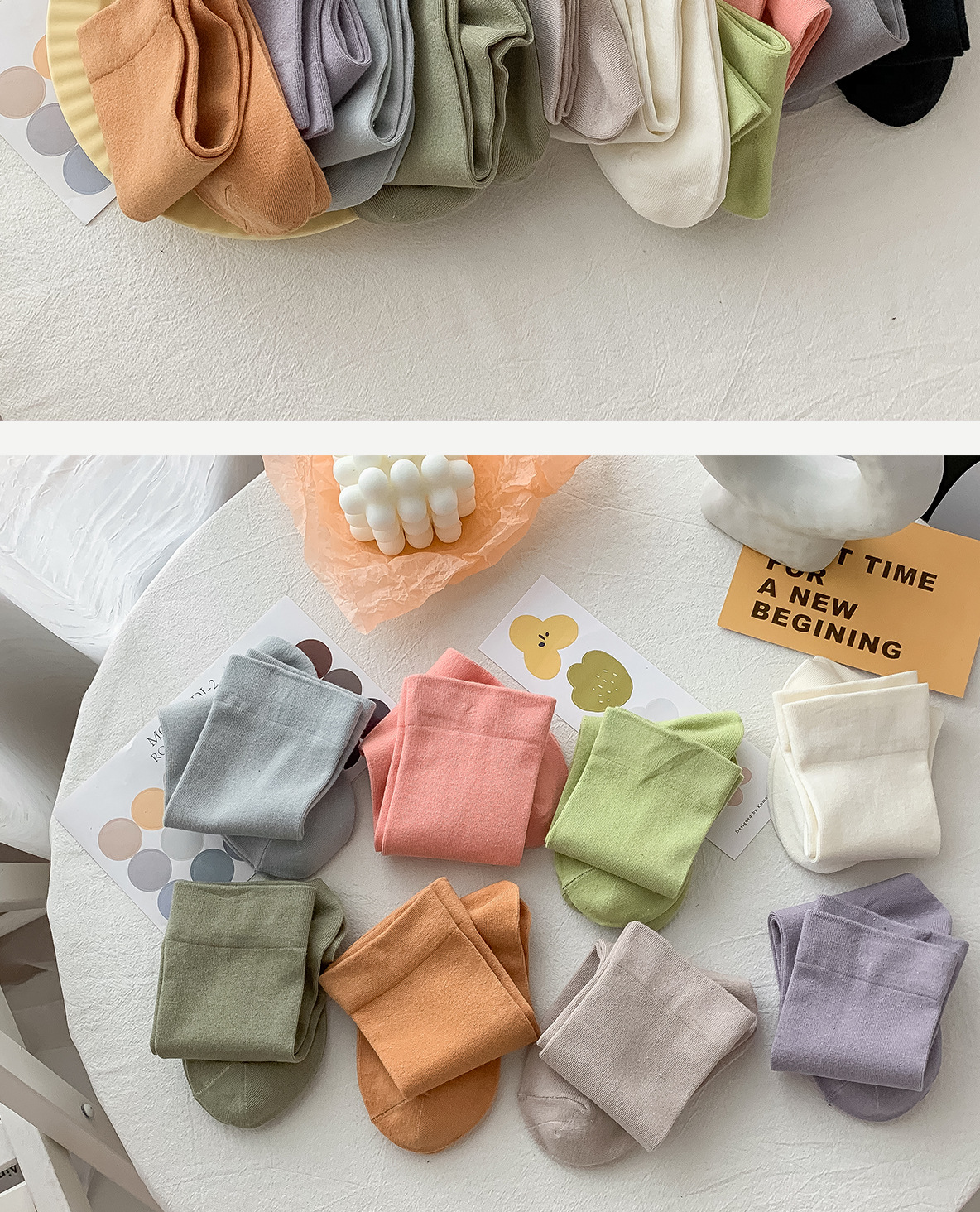 양말 여성용 봄과 가을 얇은 단색 스택 일본식 캔디 컬러 미드 튜브 여성용 양말 통기성 넓은 Rakou 여성용 면 양말스토어 가기