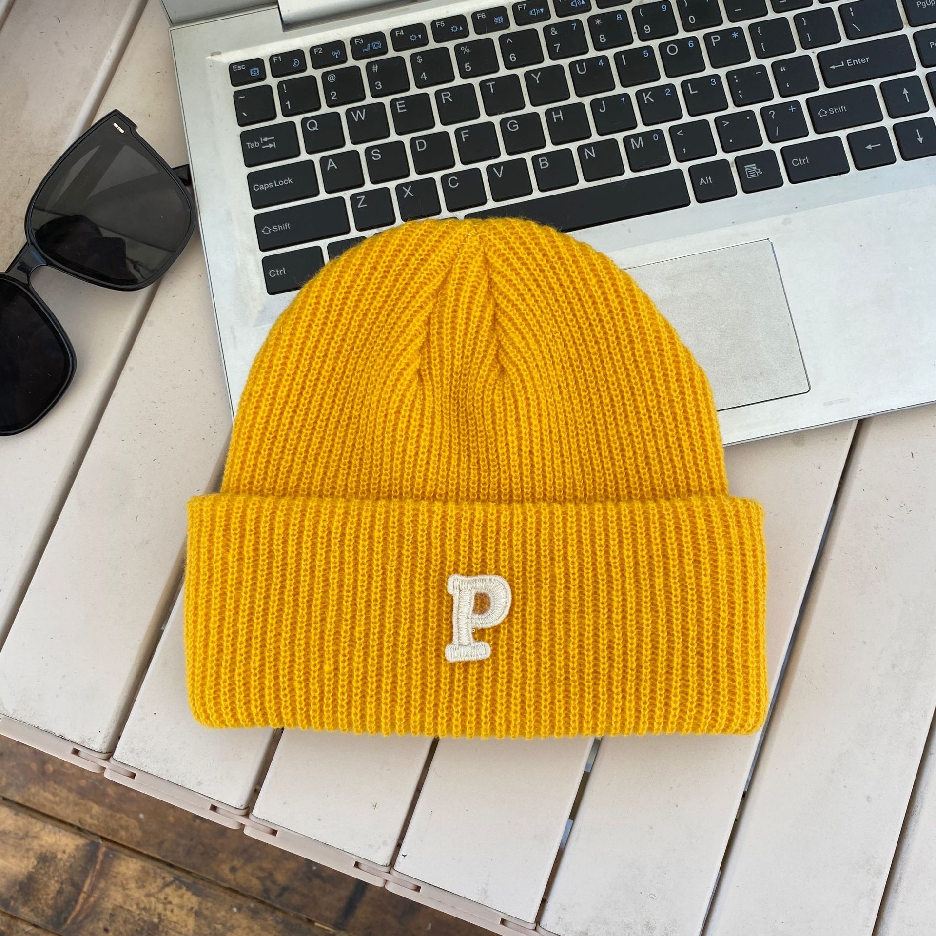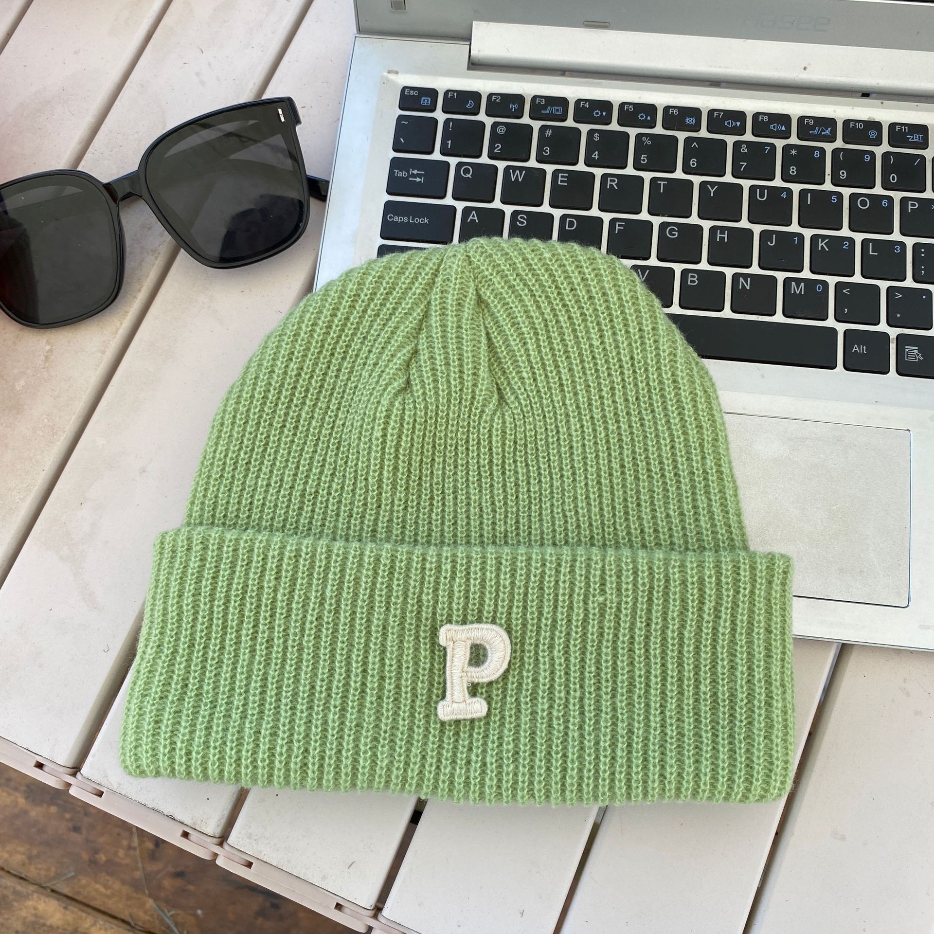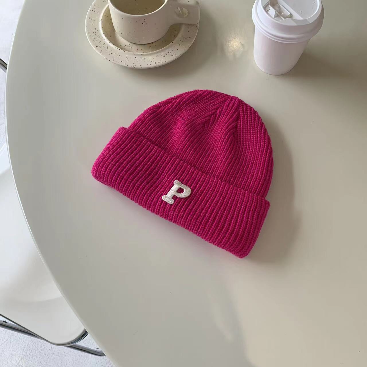 가을과 겨울 P 레터 울 니트 모자 여성용 한국식 유행 따뜻한 모든 경기 학생 스위트 쿨 콜드 햇스토어 가기