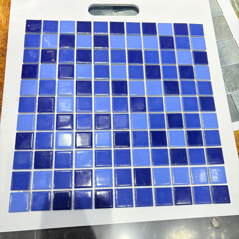 Foshan 공장 직판 3 색 블루 세라믹 모자이크 퍼즐 빌라 홈스테이 프로젝트 수영장 모자이크 타일스토어 가기