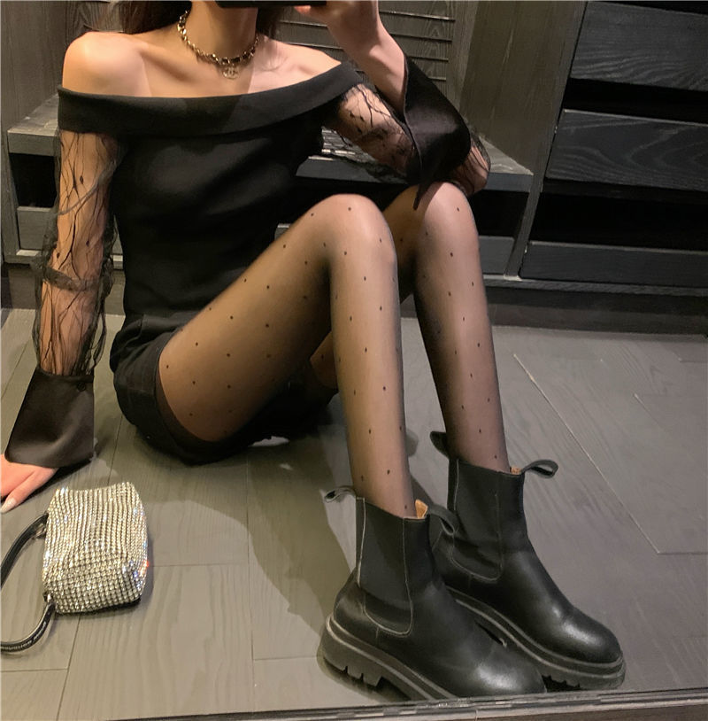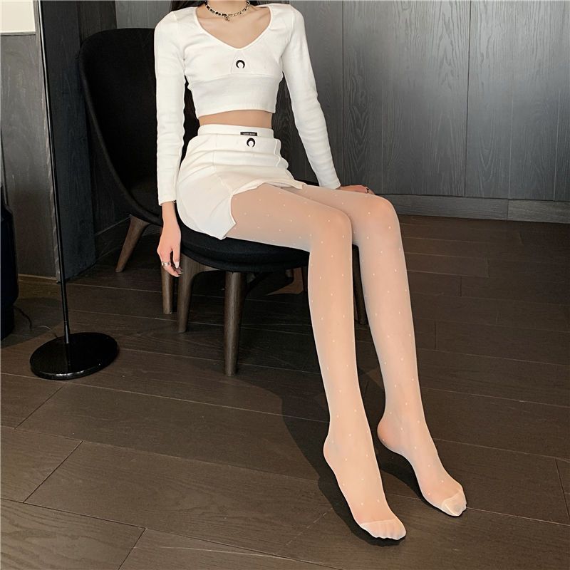 웨이브 도트 JK 화이트 실크 물방울 무늬 나비 블랙 실크 스타킹 여성 낚시 그물 스타킹 여성 섹시 얇은 실크 스타킹 여름 얇은 안티 후크 실크