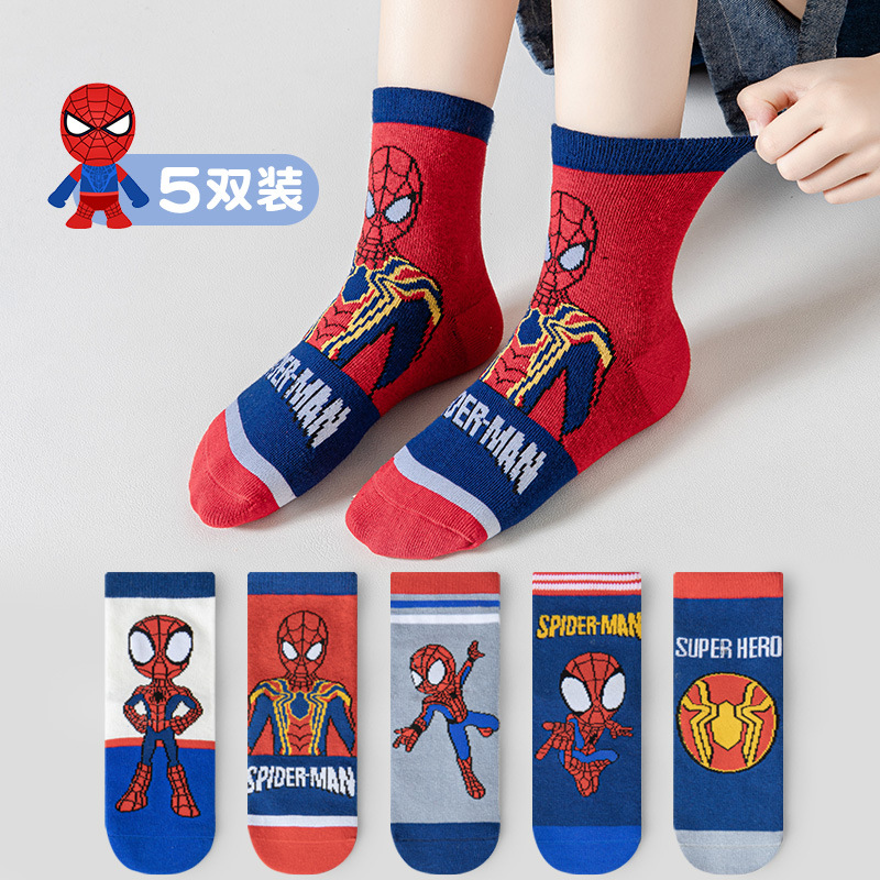 소년 양말 스파이더 맨 봄과 가을 통기성 빗질 코튼 미드 튜브 양말 가을과 겨울 중학교 학생 만화 양말 uiol