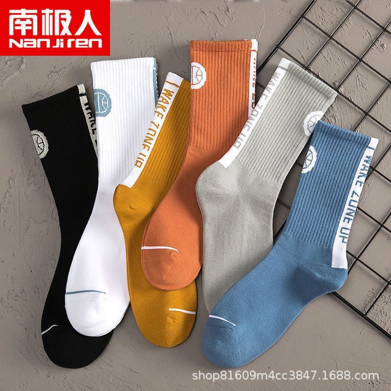 여성 양말 가을과 겨울 새로운 중간 종아리 길이 양말 간단한 줄무늬 유행 올 매치 스포츠 스타킹 일본면 양말 공장 도매