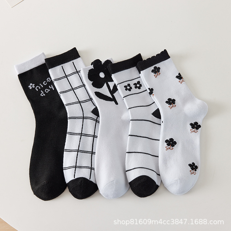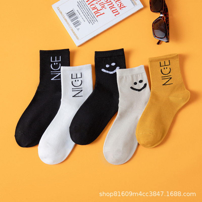 여성 양말 가을과 겨울 새로운 중간 종아리 길이 양말 간단한 줄무늬 유행 올 매치 스포츠 스타킹 일본면 양말 공장 도매스토어 가기
