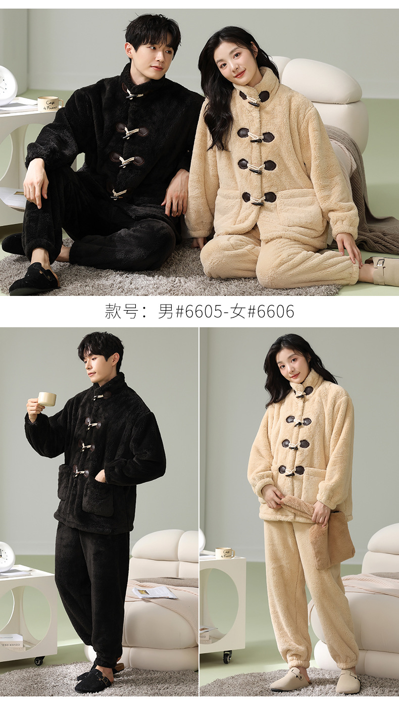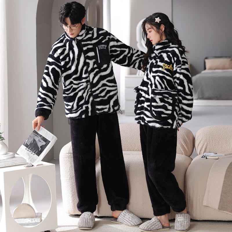 플란넬 커플 잠옷 가을과 겨울 여자의 산호 양털 두꺼운 기모 가정 옷 남자의 겨울 카디건 귀여운 세트