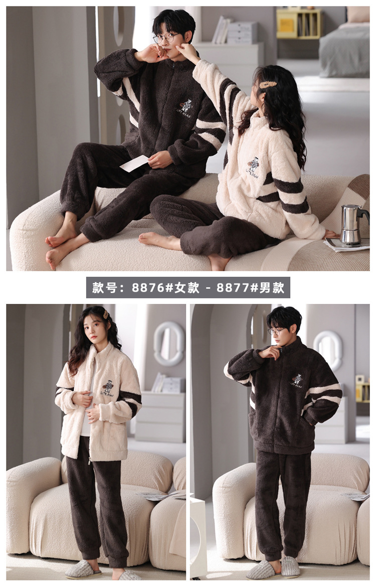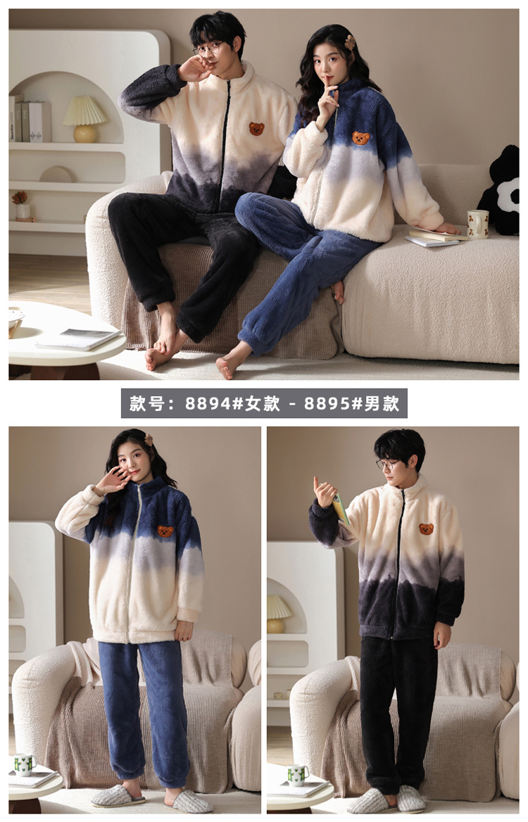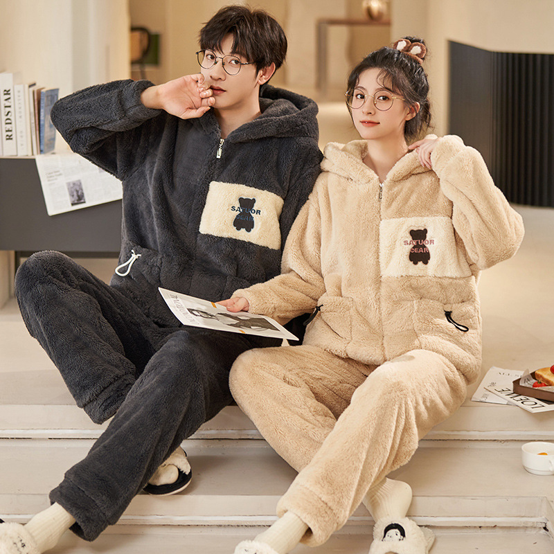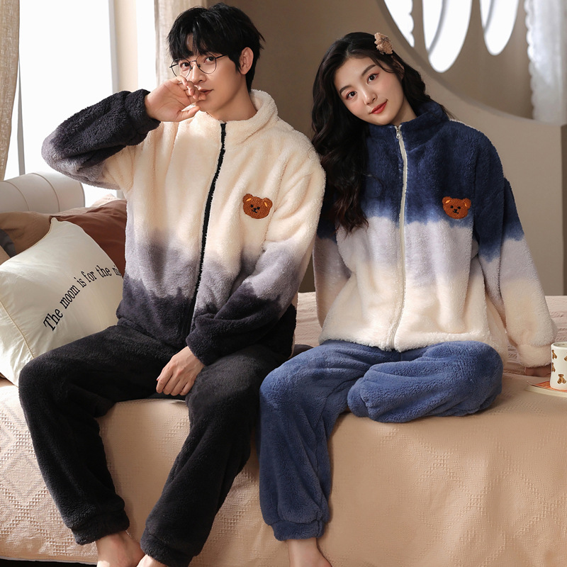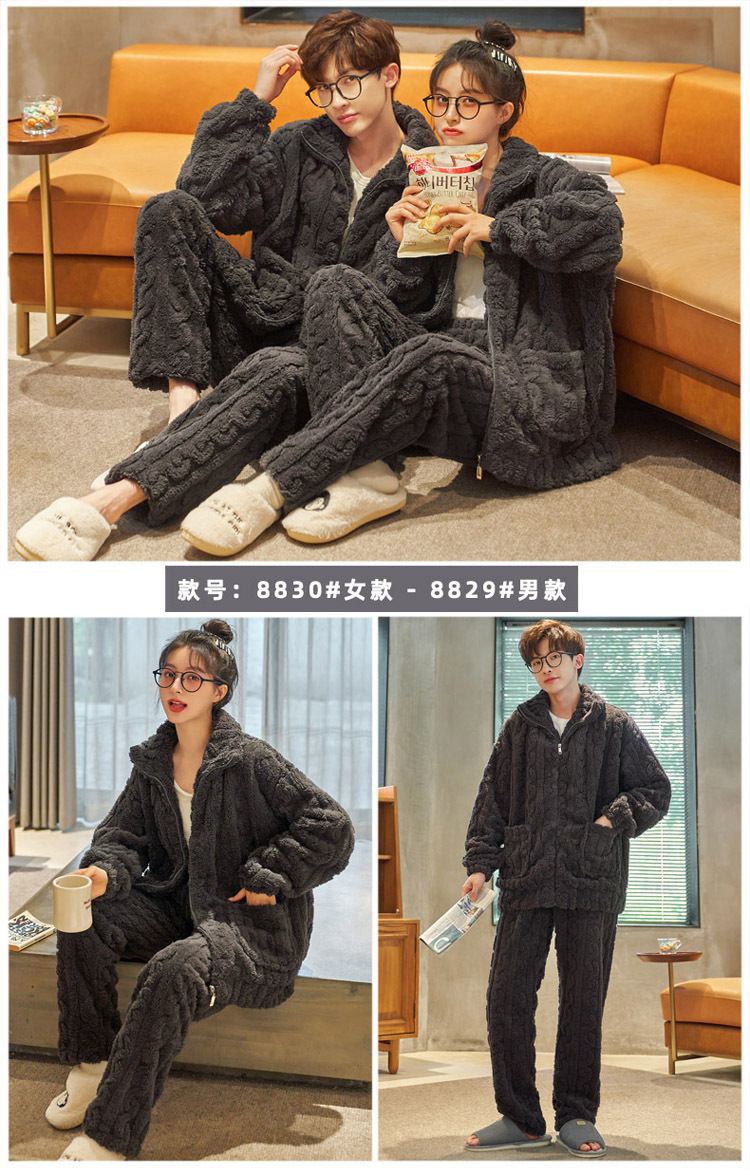 플란넬 커플 잠옷 가을과 겨울 여자의 산호 양털 두꺼운 기모 가정 옷 남자의 겨울 카디건 귀여운 세트스토어 가기