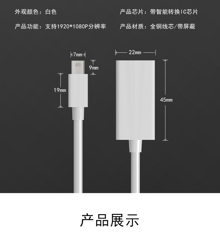 迷你dp转hdmi线4K高清雷电转接线mini dp to hdmi电脑电视转换器