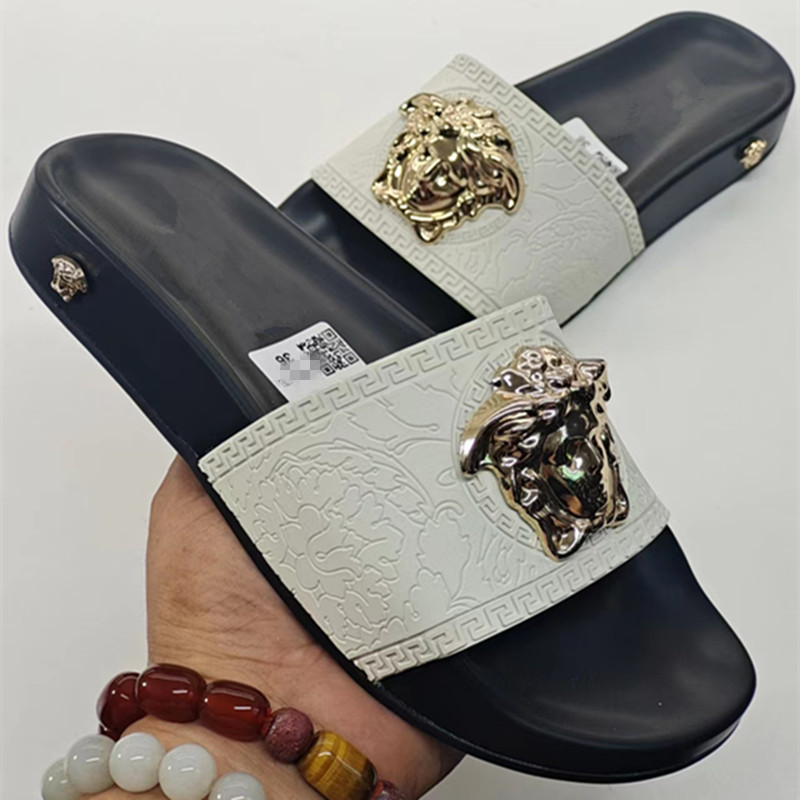 2023 여름 새로운 메탈 헤드 슬리퍼 나이지리아 베트남 캄보디아 캐주얼 원 끈 비치 샌들
