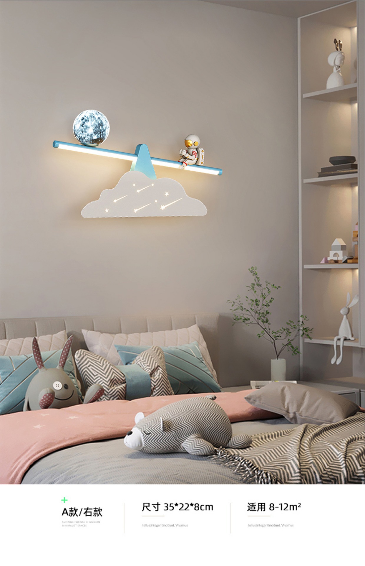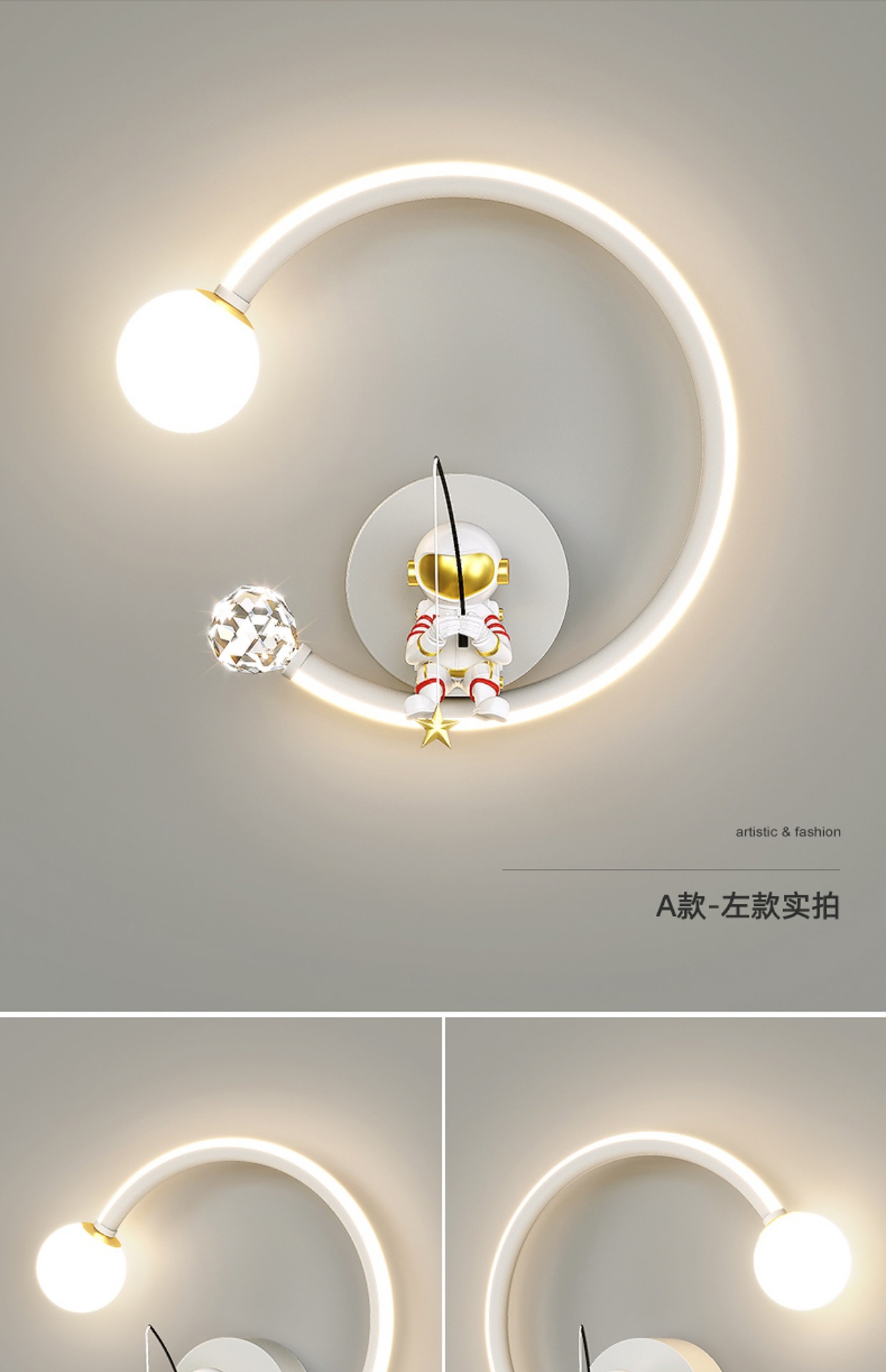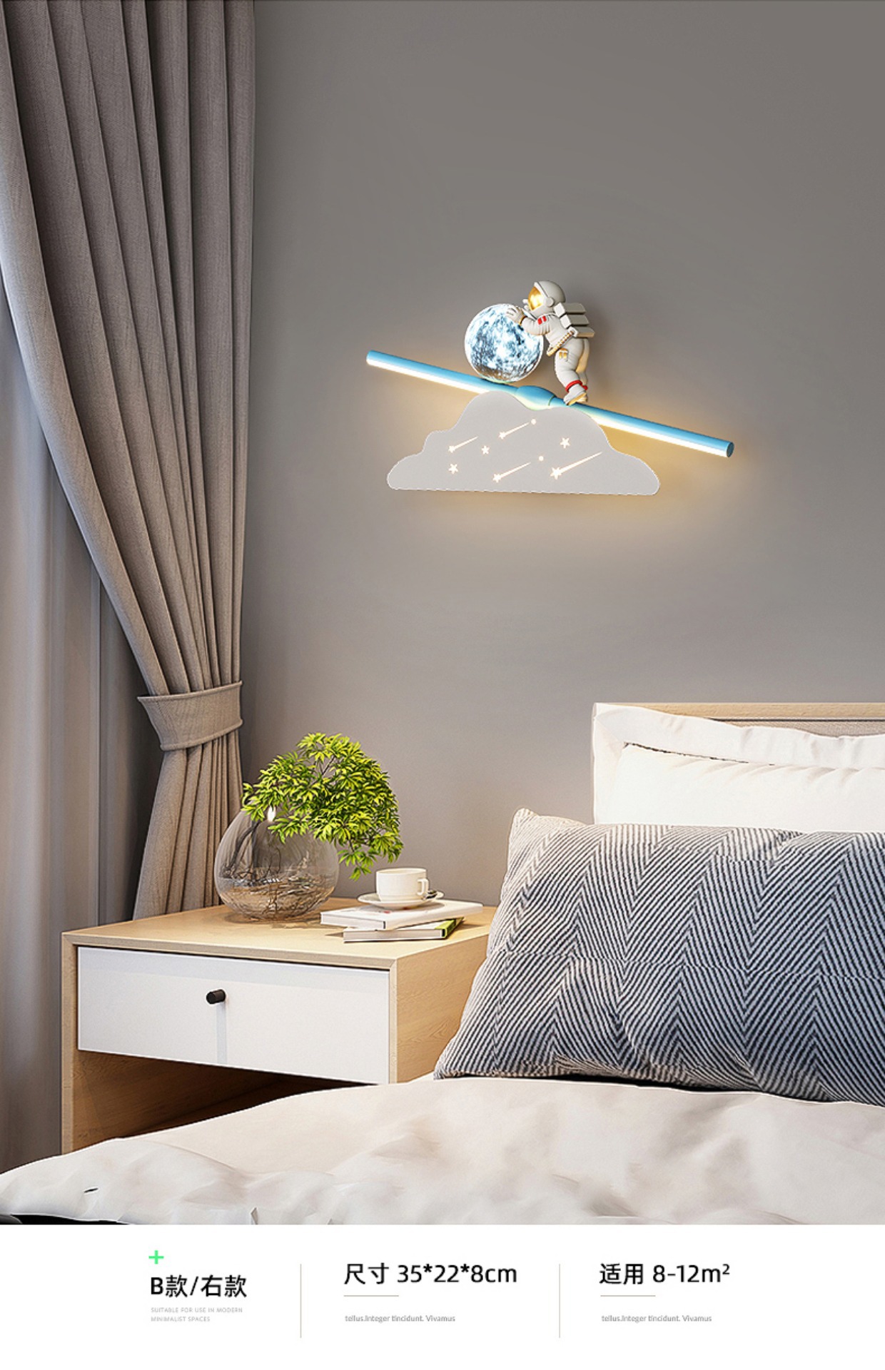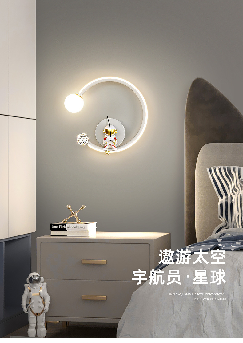 국경 간 어린이 방 만화 배경 벽 램프 현대 창조적 인 우주 비행사 소년 소녀 침실 침대 옆 램프스토어 가기