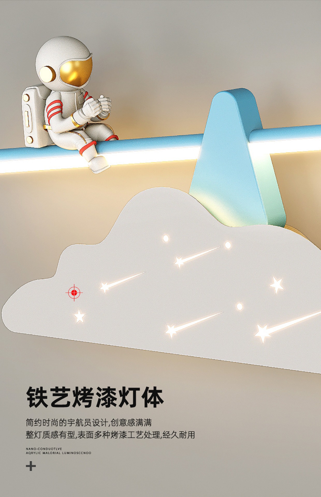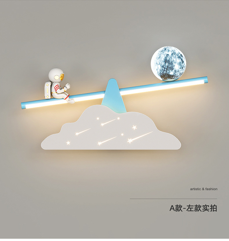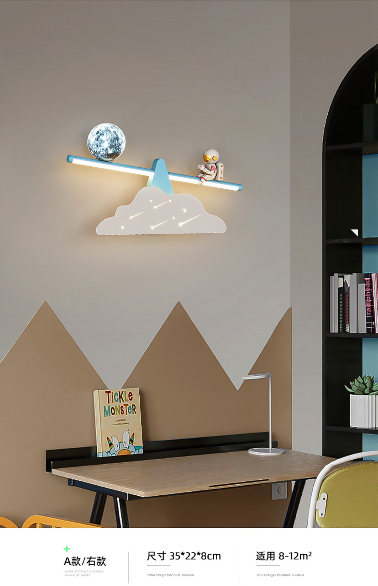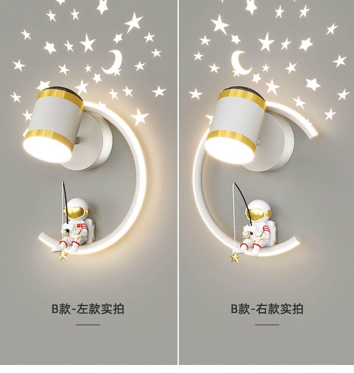 국경 간 어린이 방 만화 배경 벽 램프 현대 창조적 인 우주 비행사 소년 소녀 침실 침대 옆 램프스토어 가기