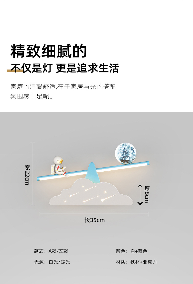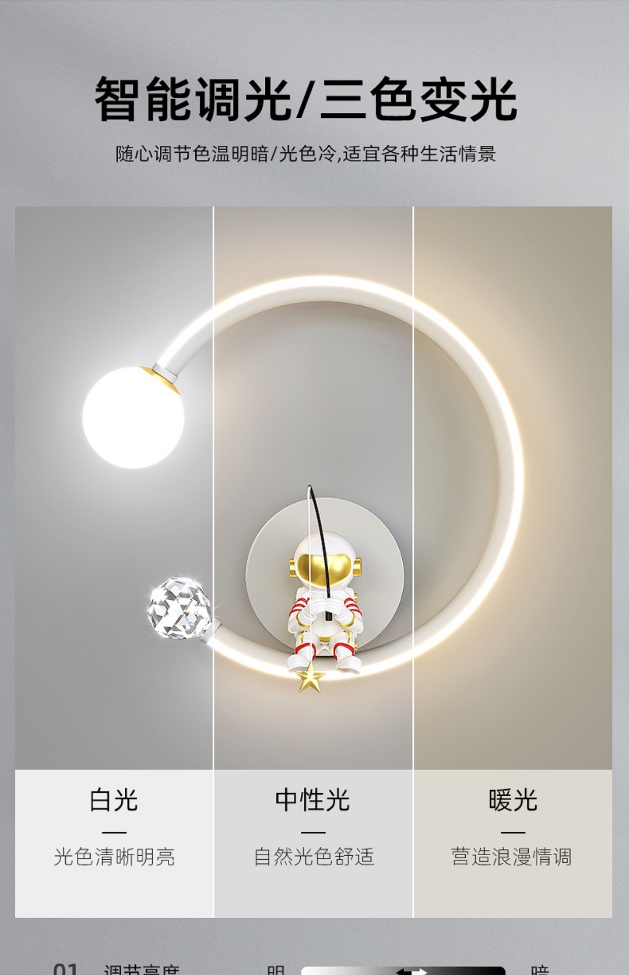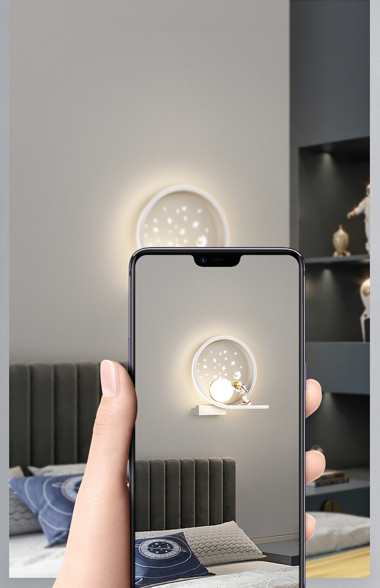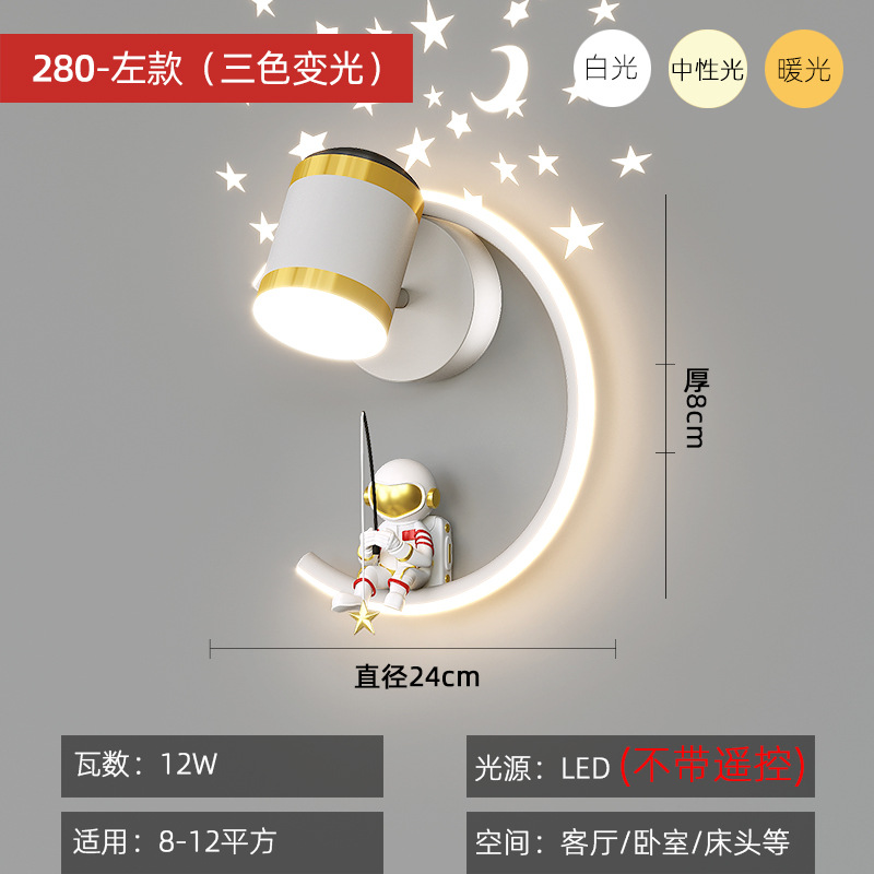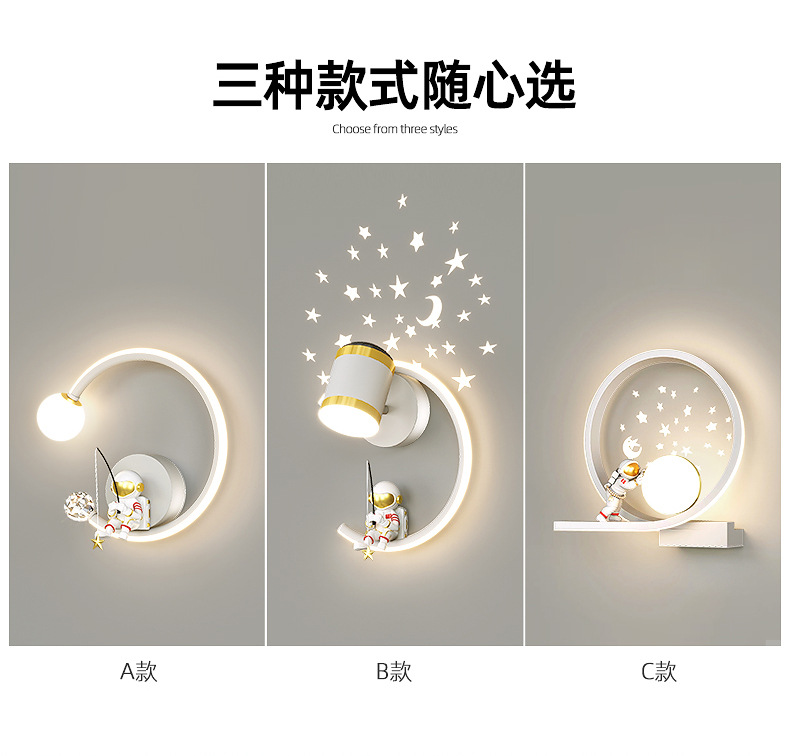국경 간 어린이 방 만화 배경 벽 램프 현대 창조적 인 우주 비행사 소년 소녀 침실 침대 옆 램프스토어 가기