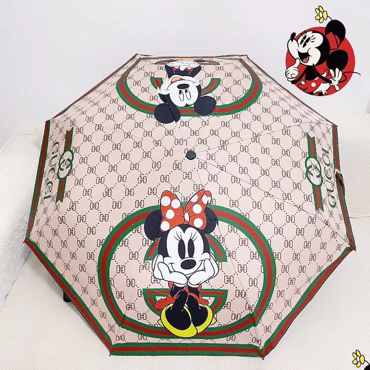 남성과 여성을위한 자동 접는 우산 맑고 비 이중 사용 미키 귀여운 만화 우산 학생을위한 검은 고무 자외선 차단제 우산
