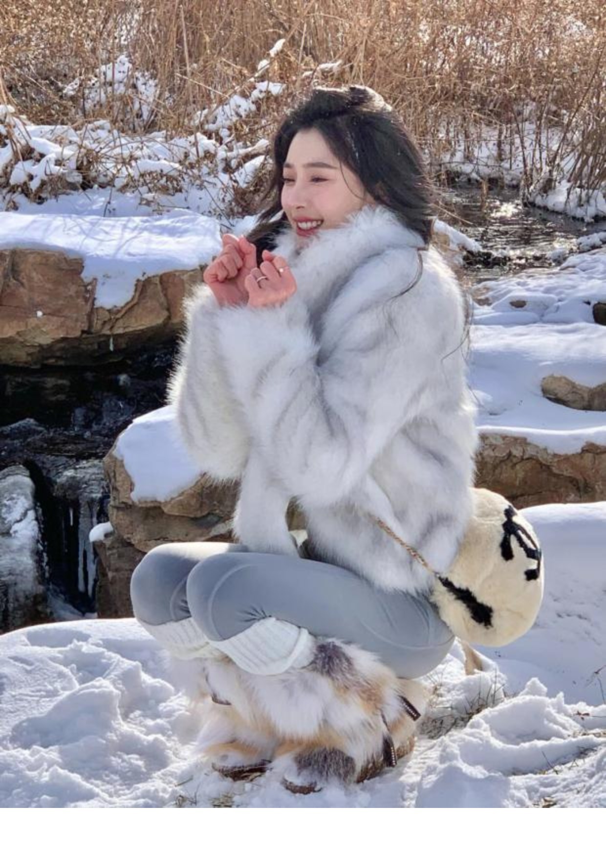 2024 겨울 신상 호주산 고급 친환경 모피 재킷 스탠드 칼라 숏 재킷 여성용 여우털스토어 가기