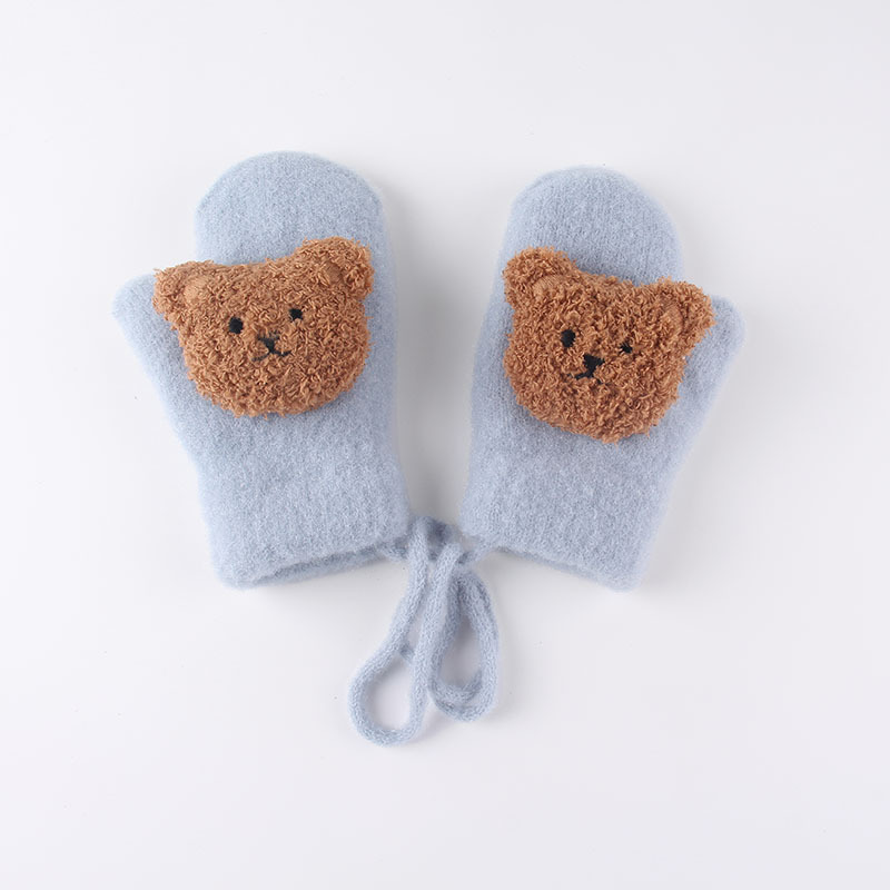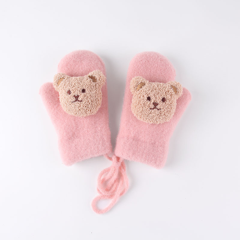 가을과 겨울 한국 3-8 세 어린이 장갑 곰 만화 겨울 기모 따뜻한 교수형 목 겨울 귀여운 손가락