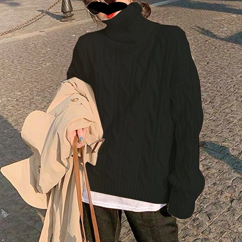 여성용 하이넥 소프트 왁시 스웨터 2025 가을 겨울 신상 루즈 풀오버 트위스트 니트 스웨터, 레이지 스타일 솔리드 컬러 베이스 레이어 스웨터스토어 가기
