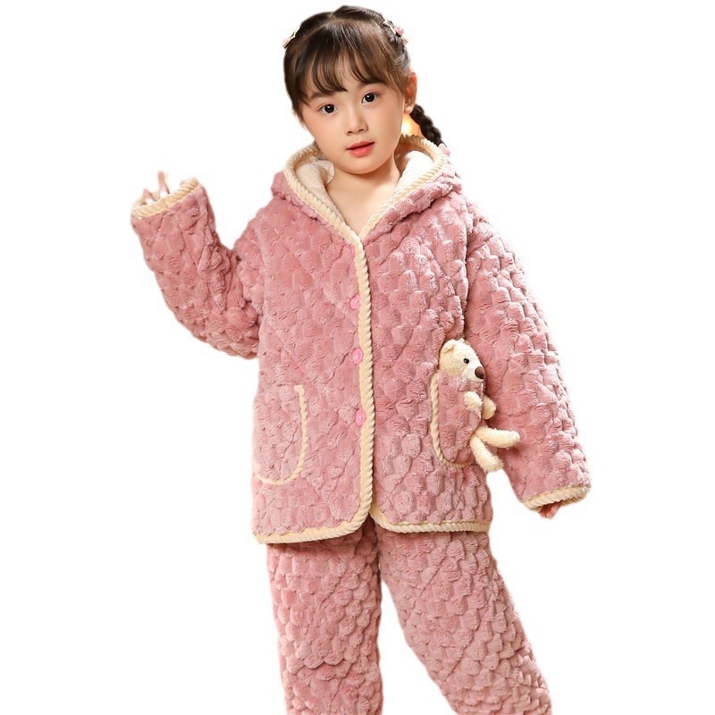 소년과 소녀를위한 어린이 플란넬 잠옷 겨울 3 층 두꺼운 베이비 벨벳 아기의 퀼트 세트 어린이 가정 의류스토어 가기