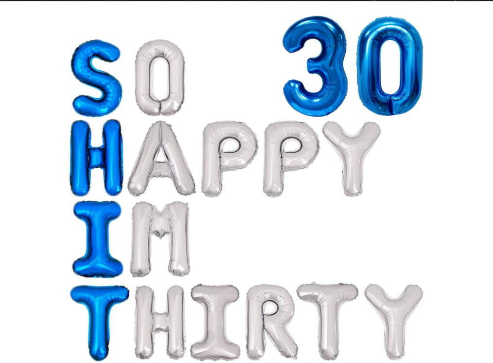 套装;(16 英寸)和两个银色数字气球 3 和 0(32 英寸)