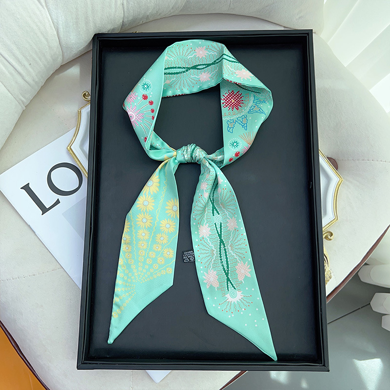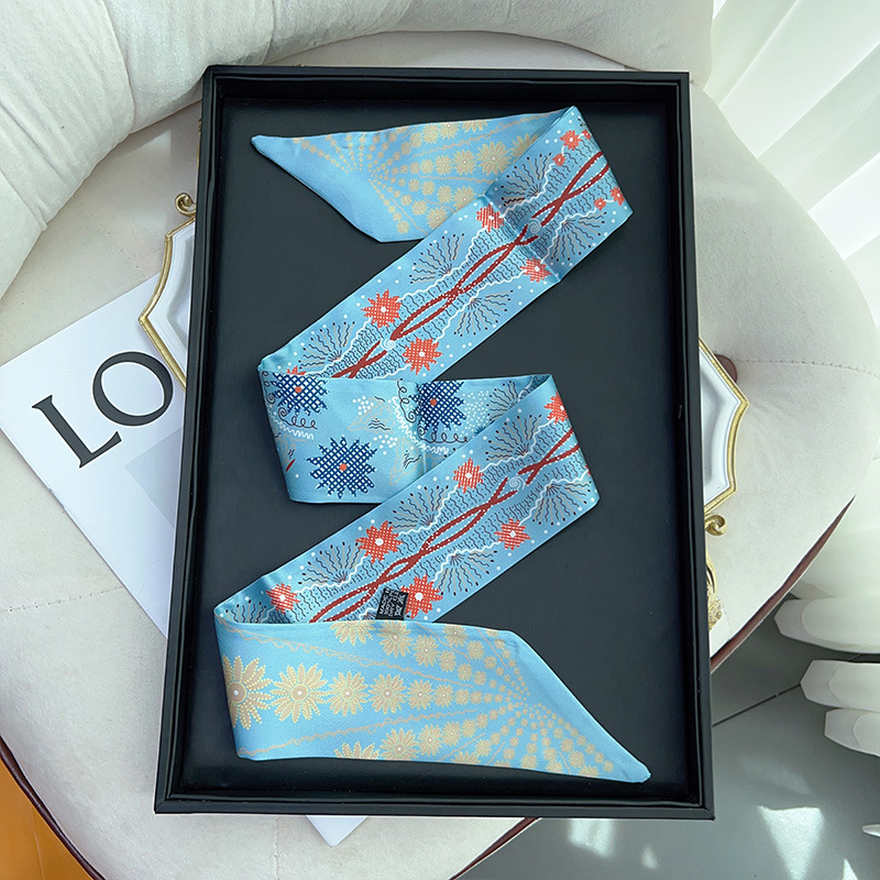 새로운 우아한 달콤한 꽃잎 패턴 긴 경 사진 실크 스카프 예술적 프랑스 스타일 헤어 밴드 모든 매치 넥 리본