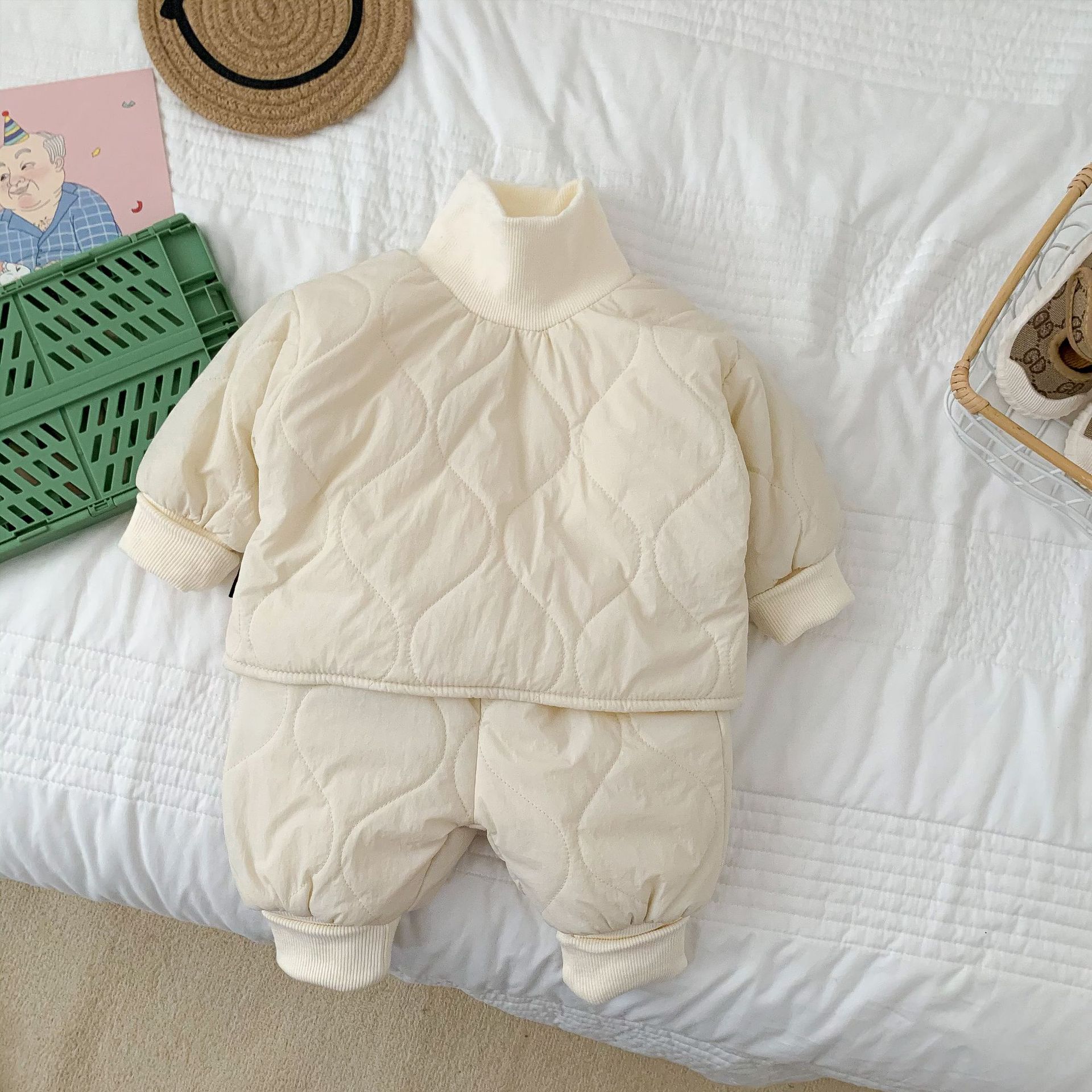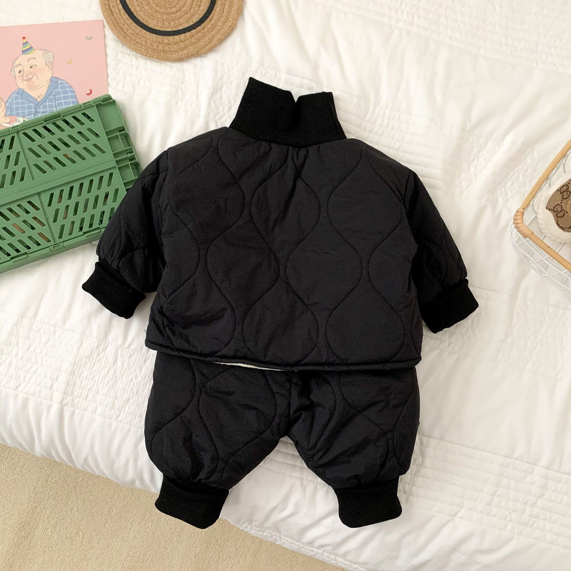 어린이 의류 아기 세트 한국 스타일 가을과 겨울 스타일 어린이 퀼트와 벨벳 세트 면 세트 아기 복장스토어 가기