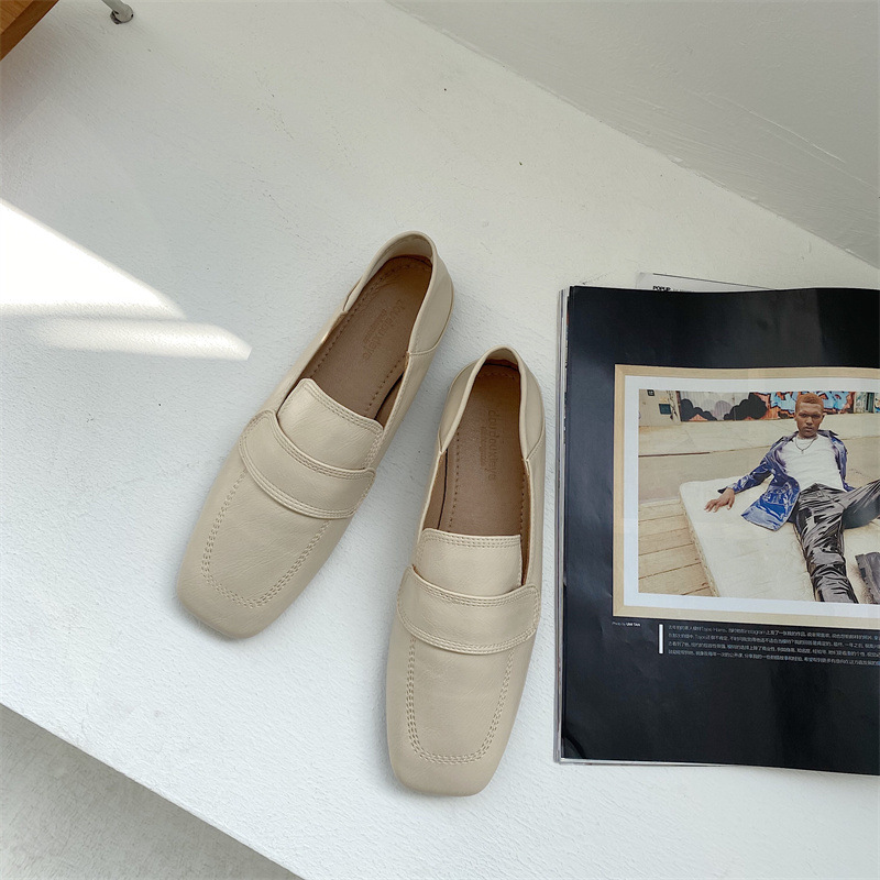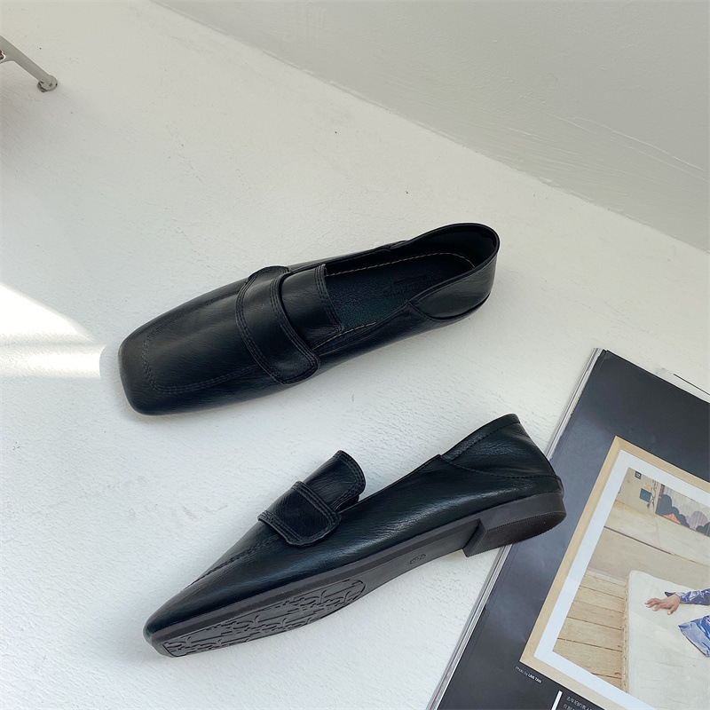 신발 여성용 2023 새로운 봄 플랫 스퀘어 토 밀크 신발 낮은 입 부드러운 밑창 슬립온 신발 한국 스타일 부드러운 가죽스토어 가기