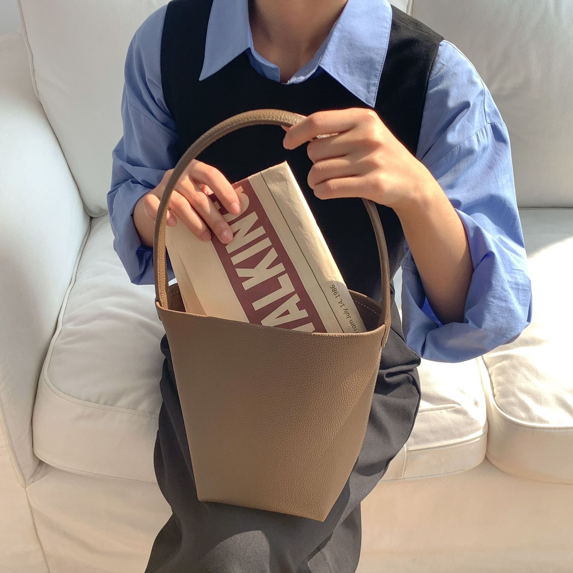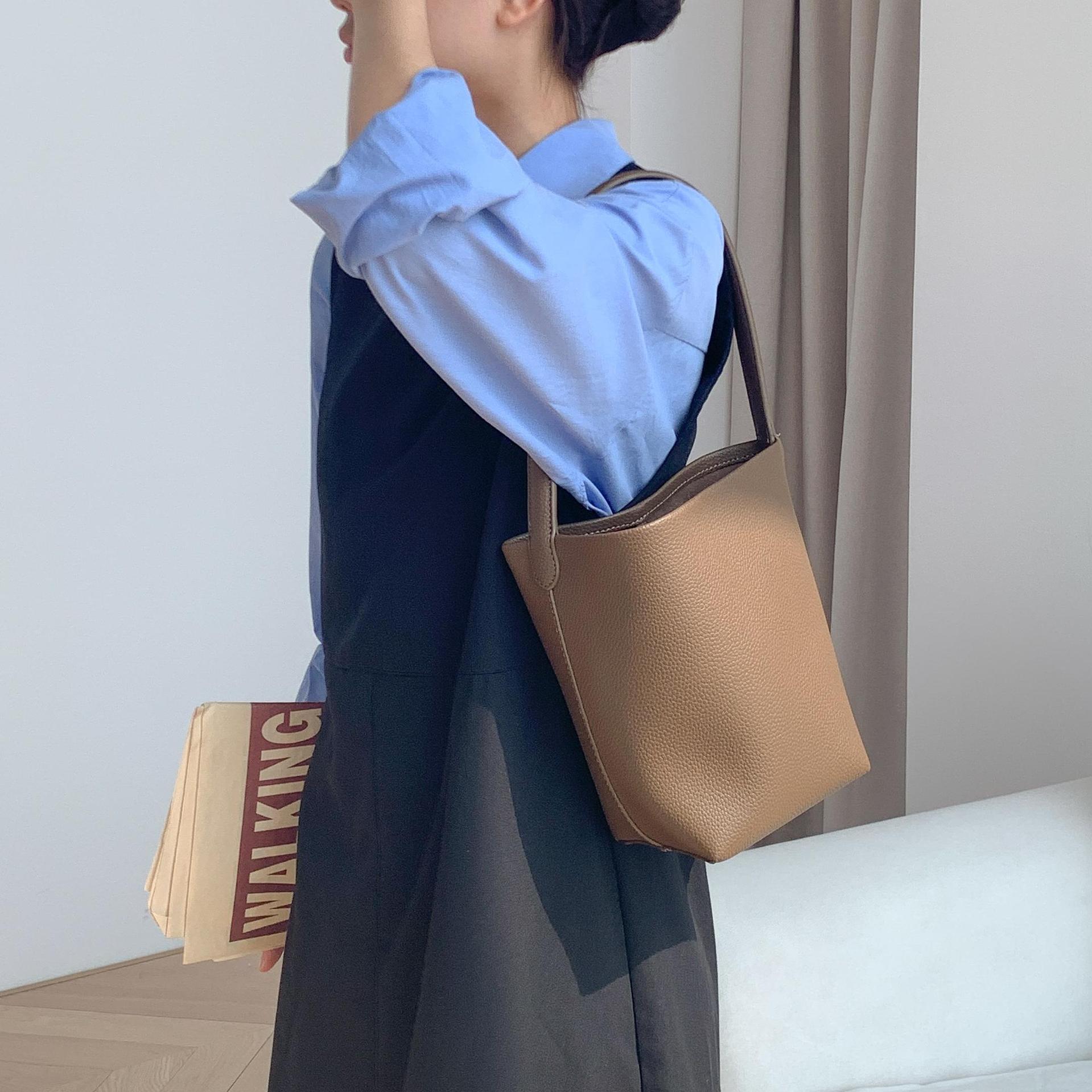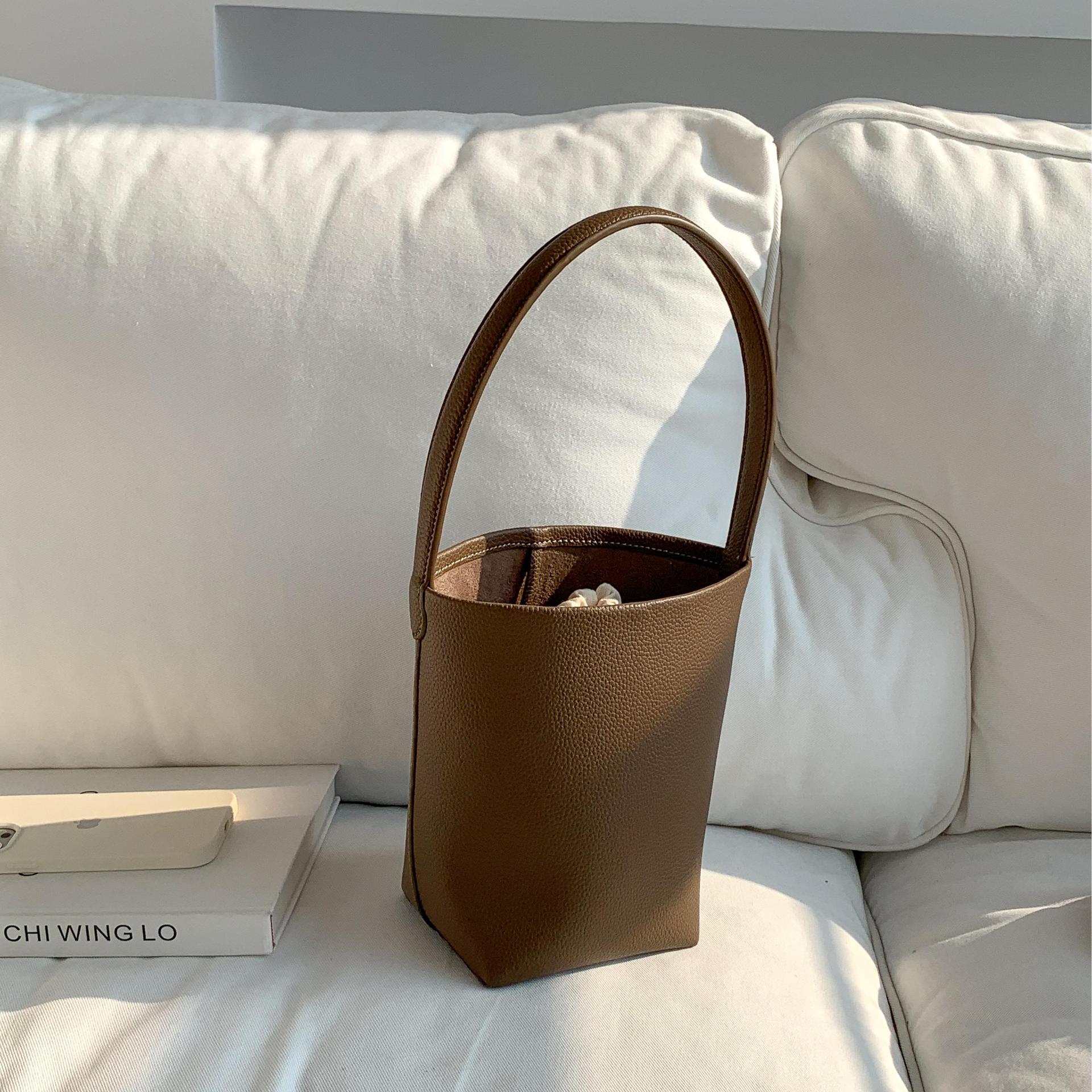 크로스보더 원통형 물통 가방 여성용 대용량 고급스러운 한국 스타일 핸드백 여성용 심플한 PU 가죽 숄더백 여성용스토어 가기