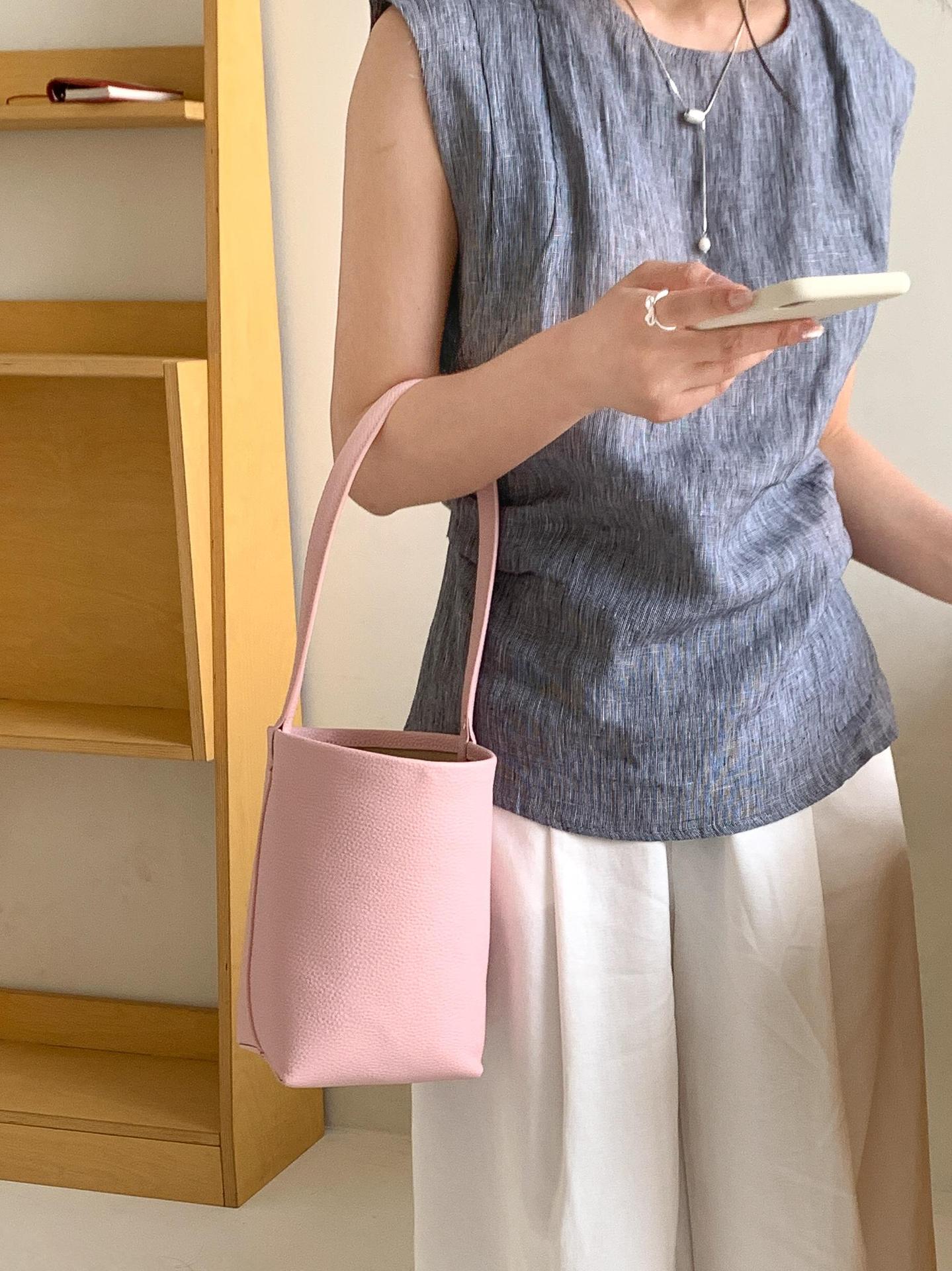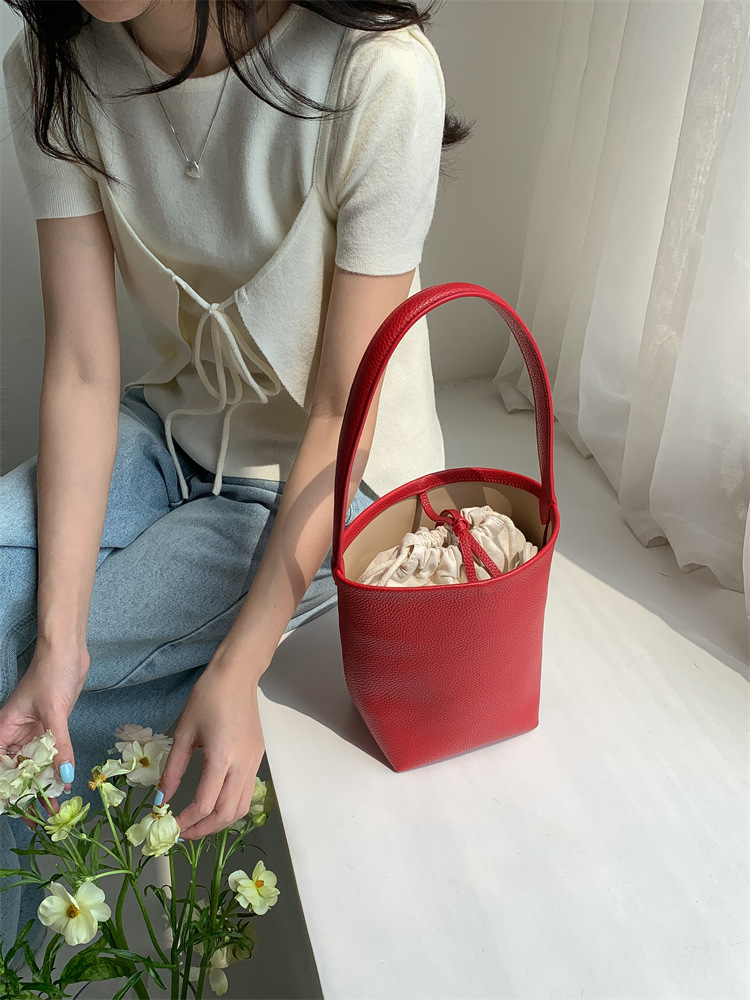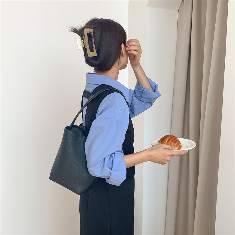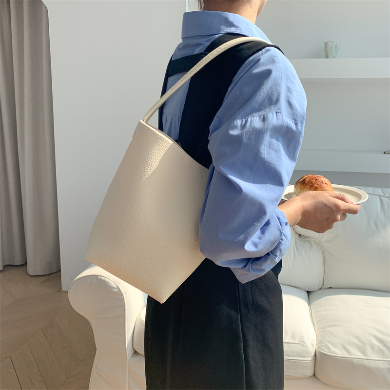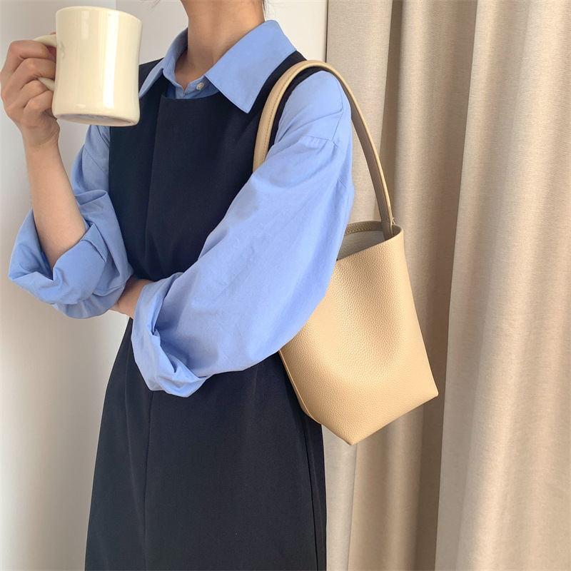 크로스보더 원통형 물통 가방 여성용 대용량 고급스러운 한국 스타일 핸드백 여성용 심플한 PU 가죽 숄더백 여성용스토어 가기