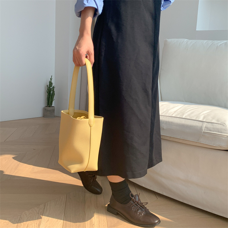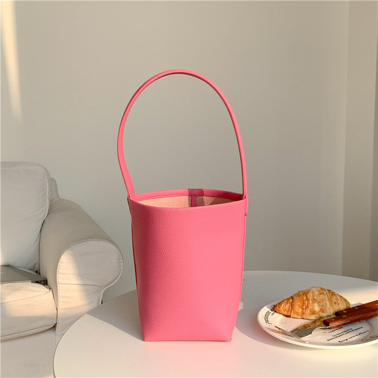 크로스보더 원통형 물통 가방 여성용 대용량 고급스러운 한국 스타일 핸드백 여성용 심플한 PU 가죽 숄더백 여성용