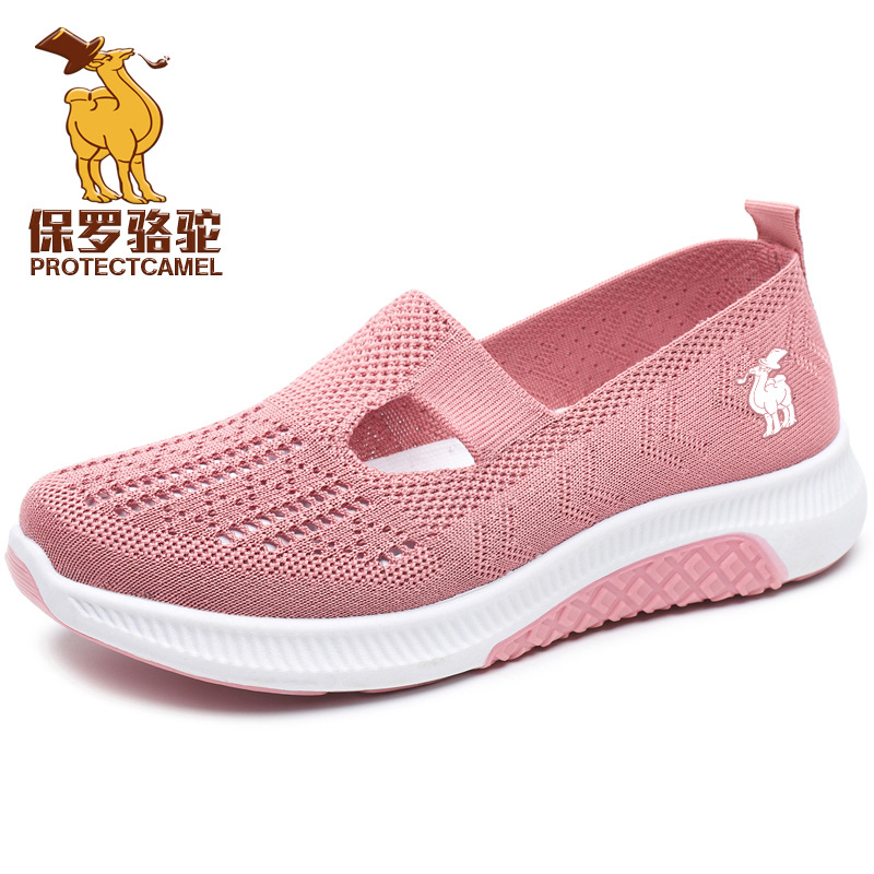 날으는 짠 캐주얼 플랫 편안한 어머니 신발 봄과 가을 새로운 소프트 솔 미끄럼 방지 운동화 슬립 온 게으른 신발스토어 가기