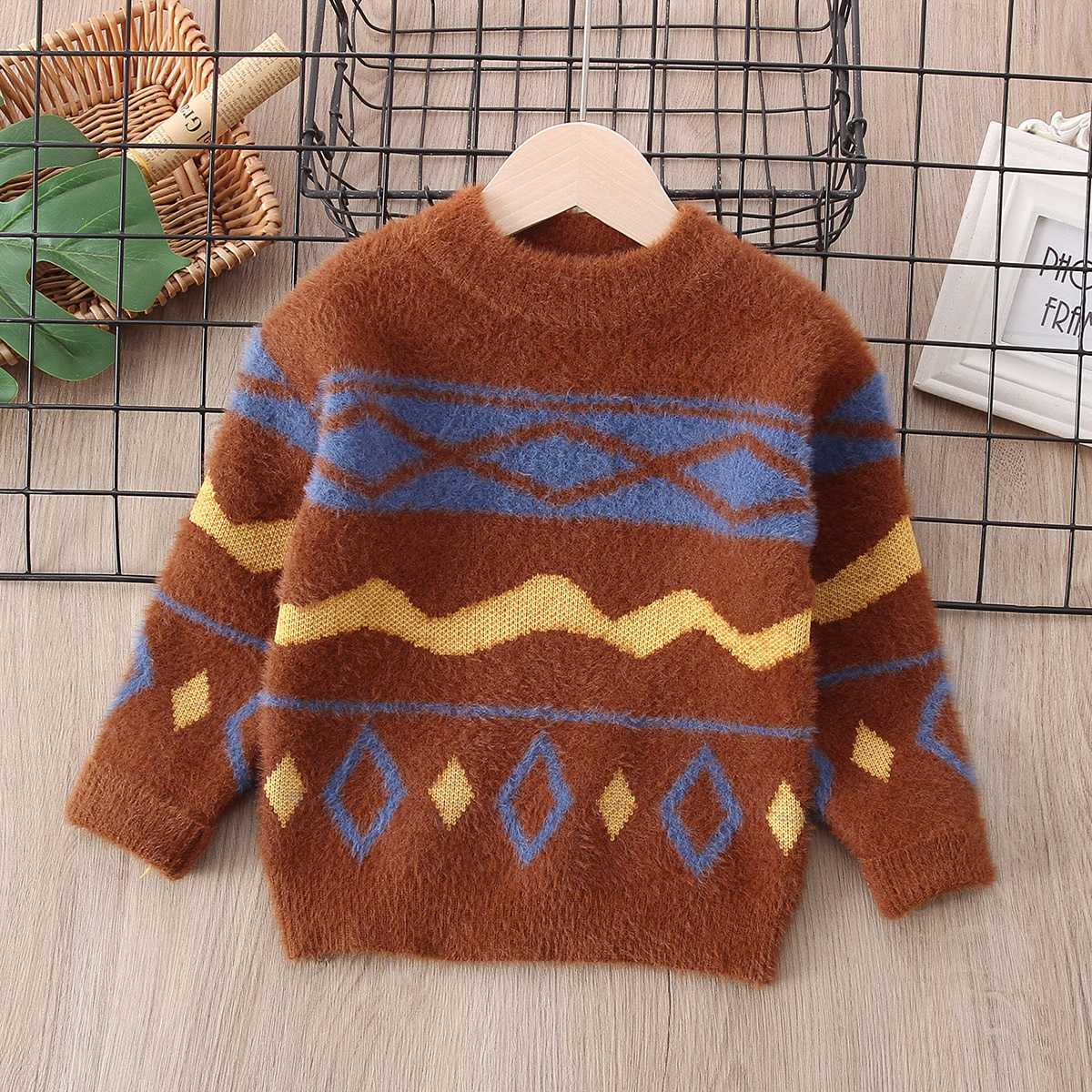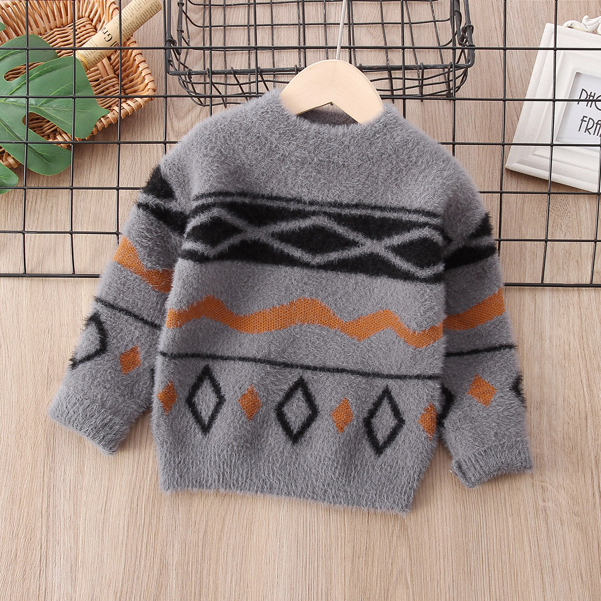 2022 가을과 겨울 새로운 한국 아동복 남성과 어린이 모조 밍크 벨벳 따뜻한 스웨터 아기 부드러운 비 필링 스웨터스토어 가기