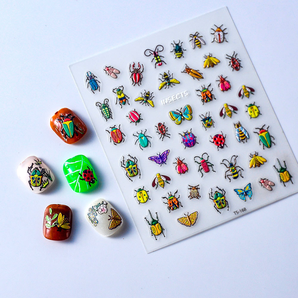 크로스 보더 네일 스티커 방수 Coccinella septempunctata 5D 곤충 어린이 귀여운 네일 스티커 구호 지원 혼합 배치스토어 가기