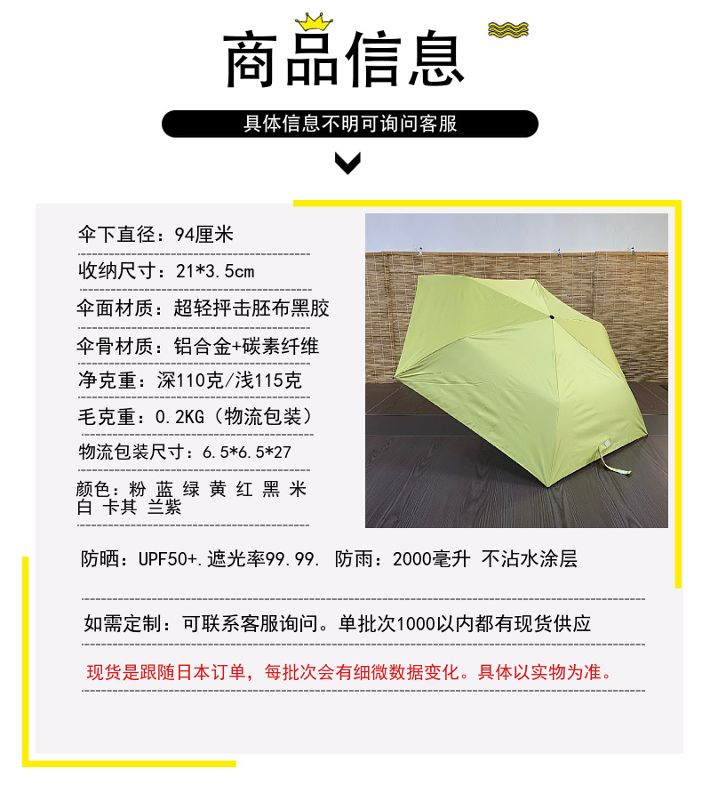 110g 비닐 초경량 우산 일본 간단한 탄소 섬유 휴대용 무부담 anti-UV99.99 소수성 스핀 드라이스토어 가기