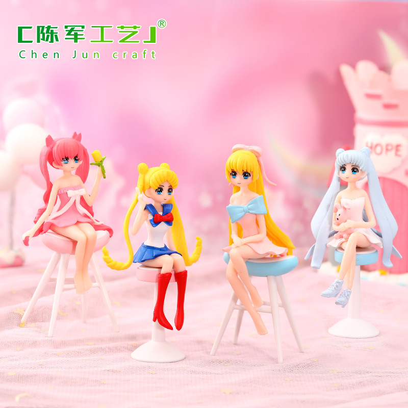 새로운 귀여운 아름다운 소녀 의자 마이크로 풍경 DIY 장식 만화 아름다운 소녀 플라스틱 장식품스토어 가기