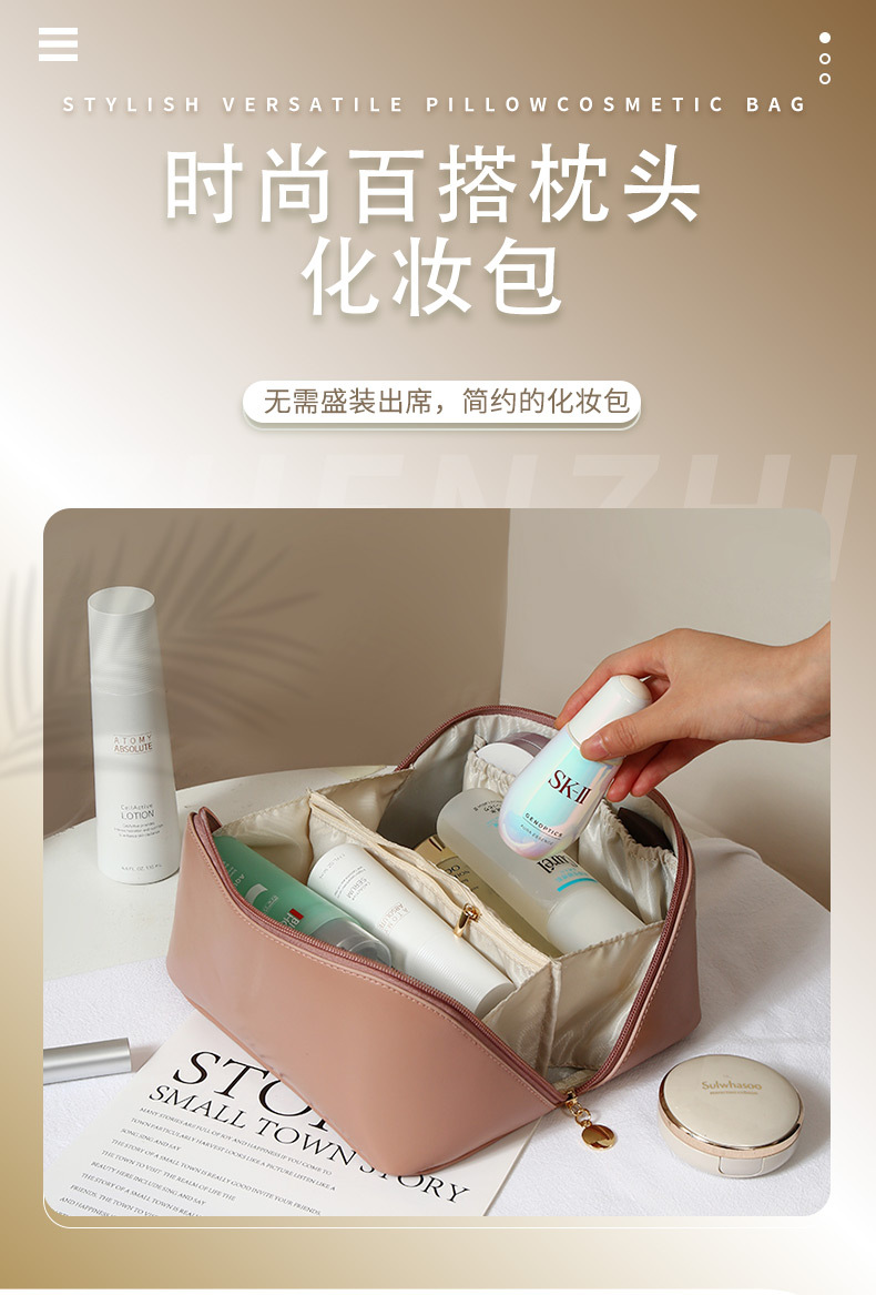 오르간 화장품 가방, 휴대용 대용량 메이크업 브러쉬 및 스킨 케어 제품 보관 가방, 여행용 세탁 PU 방수 가방스토어 가기
