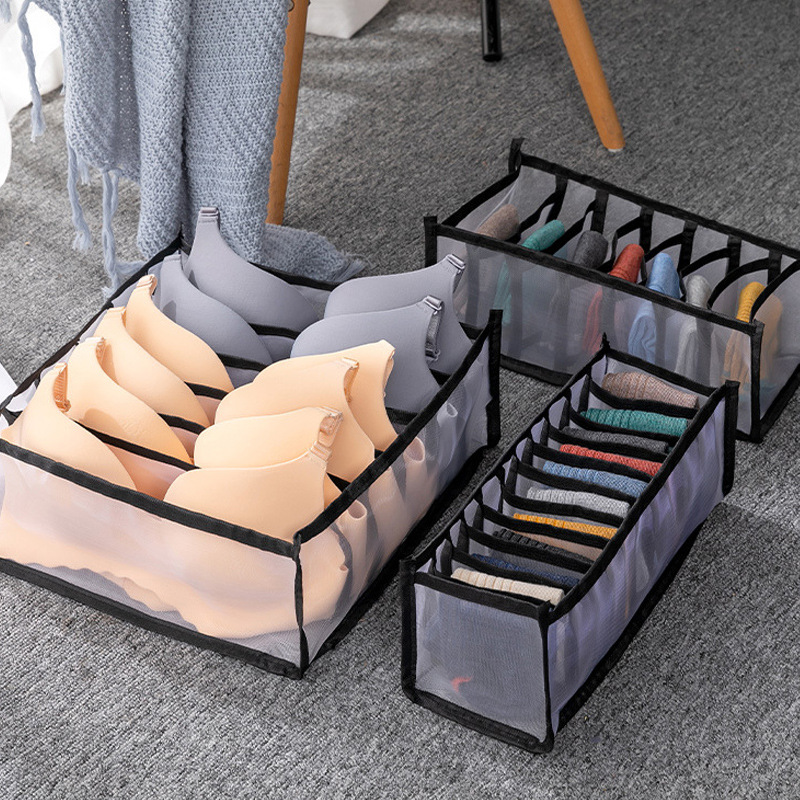 메쉬 천 속옷 보관함 3 피스 접이식 브래지어 팬티 마감 상자 빨
