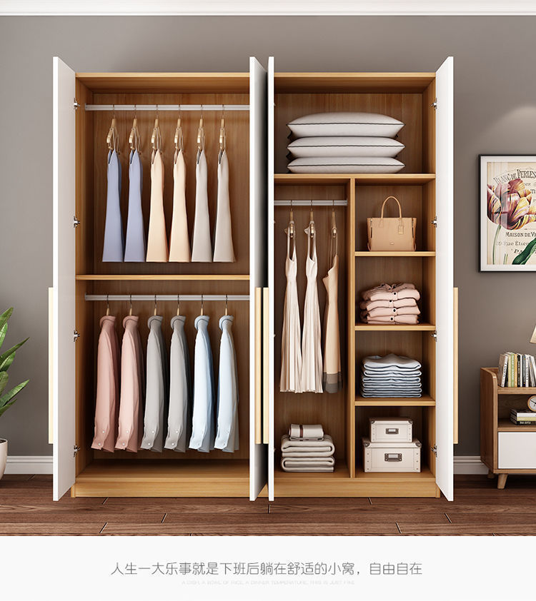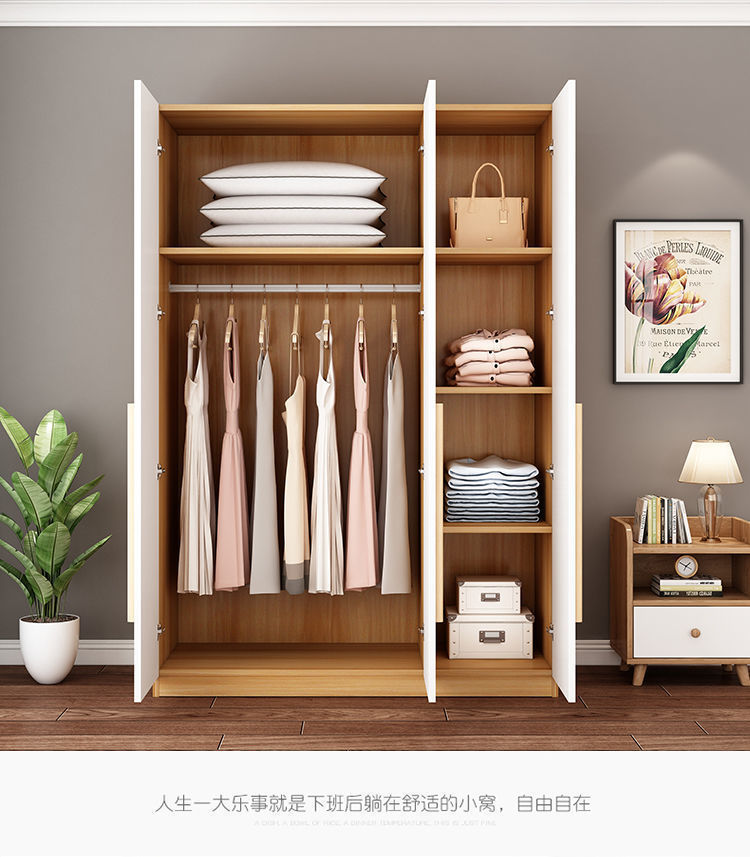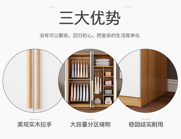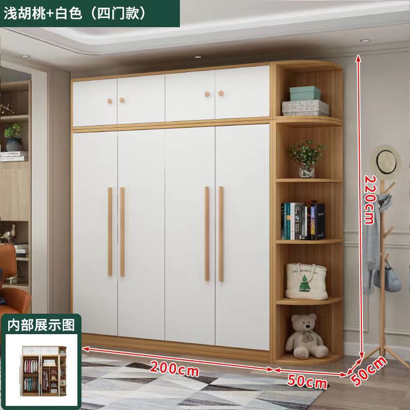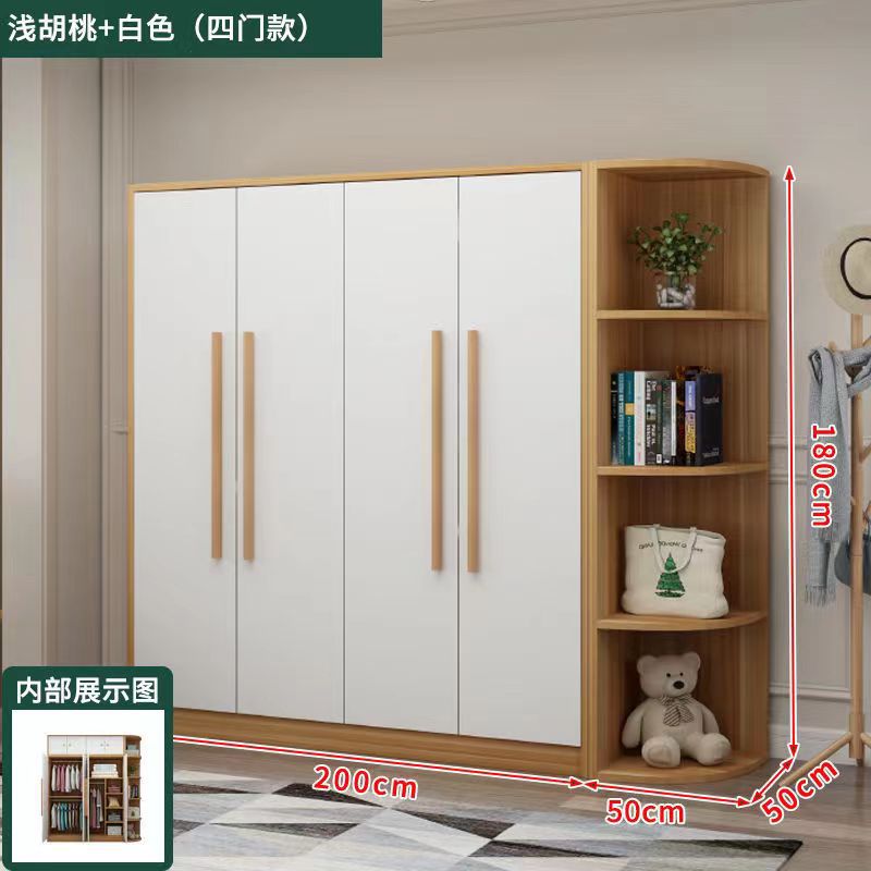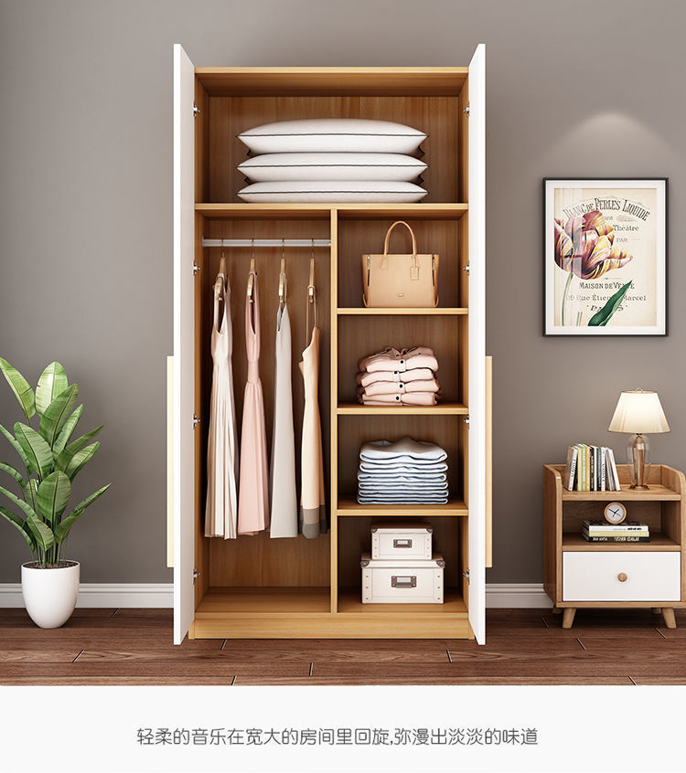 간단한 옷장 홈 침실 캐비닛 보관 캐비닛 임대 방 단단한 나무 슬라이딩 도어 보관 캐비닛 옷장 조립스토어 가기