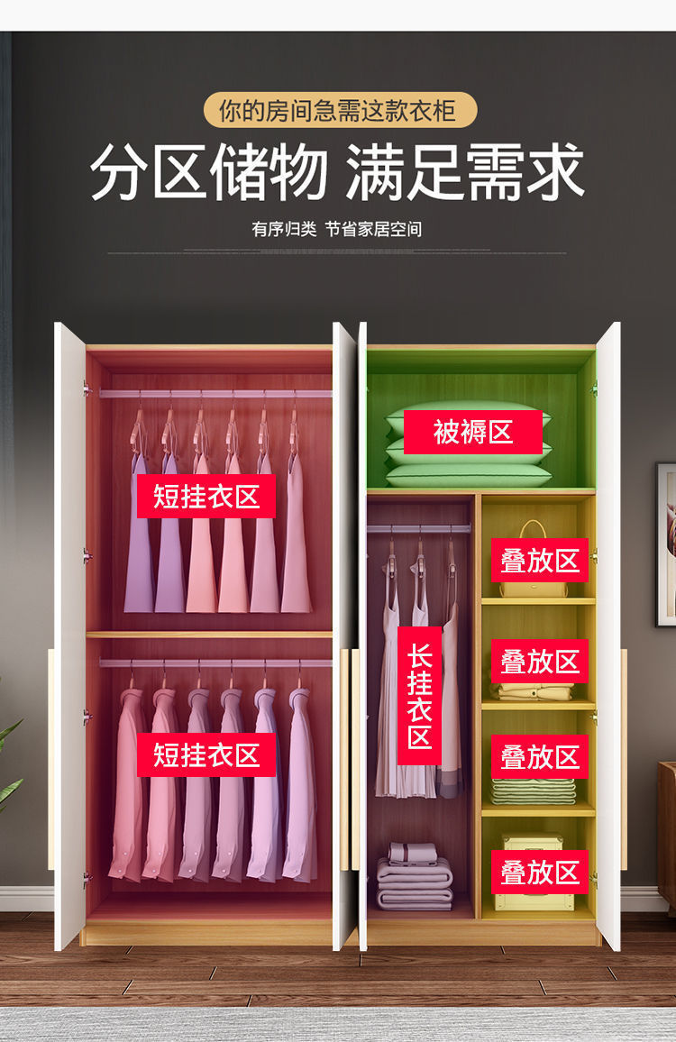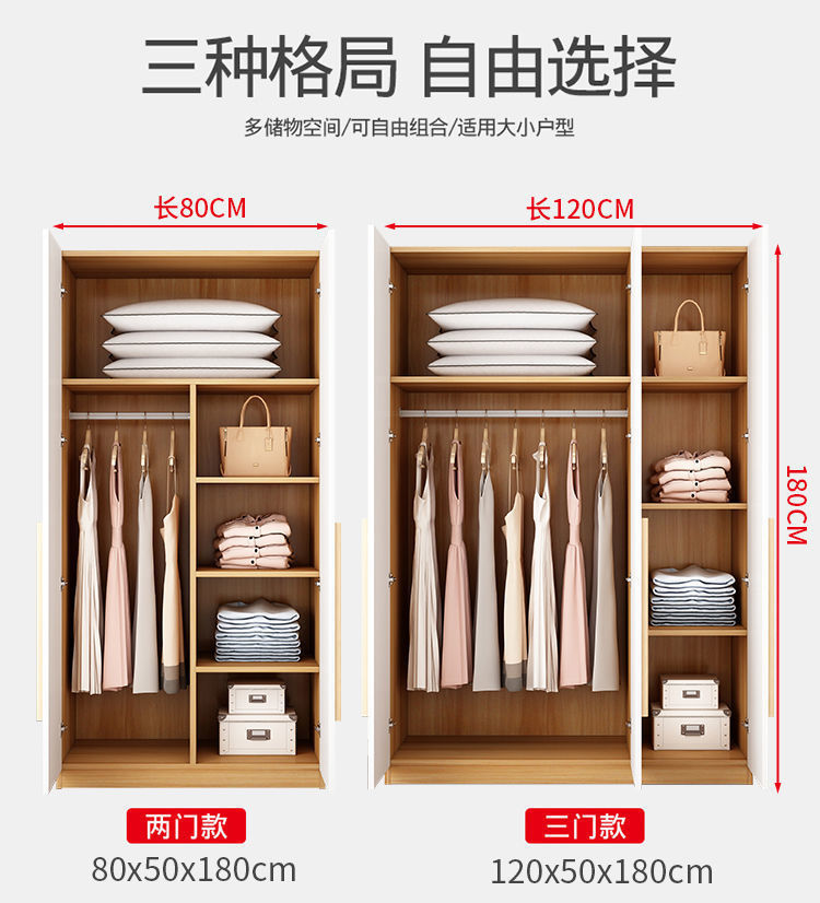 简易衣柜家用卧室柜子出租房用收纳柜实木推拉门储物柜衣橱组装