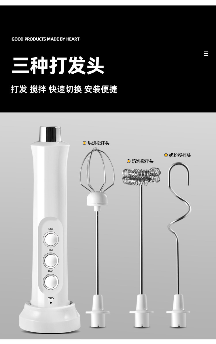 USB 충전식 전기 우유 거품기 3 세트 커피 우유 거품기 우유 거품기 휴대용 거품기 계란 거품기