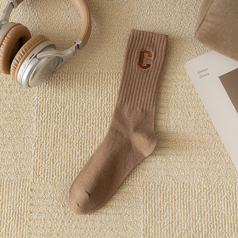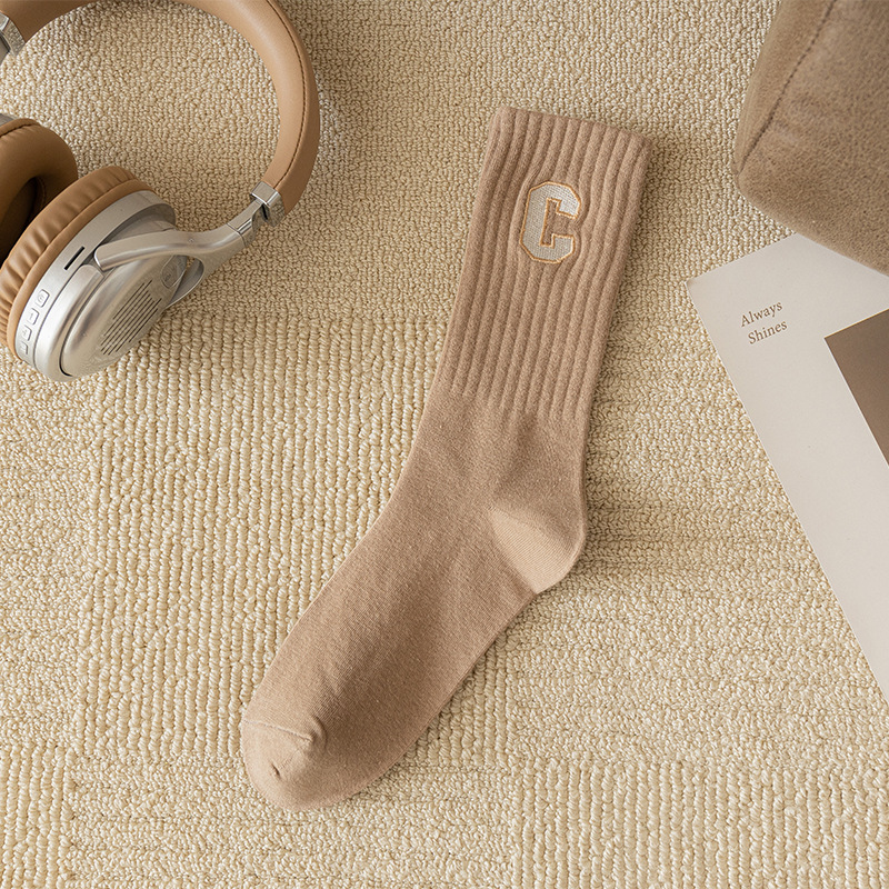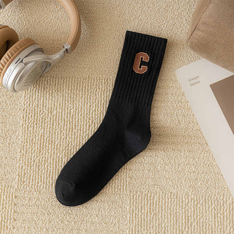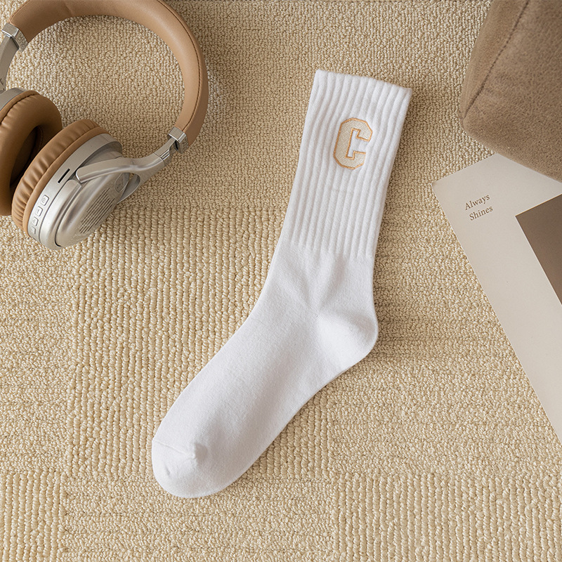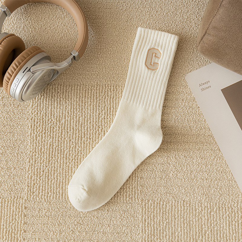양말 여성용 봄과 가을 순면 중간 길이 양말 가을 스타킹 트렌디 한 롱 배럴 편지 C 아우터 상어 바지 트렌디 한 양말스토어 가기