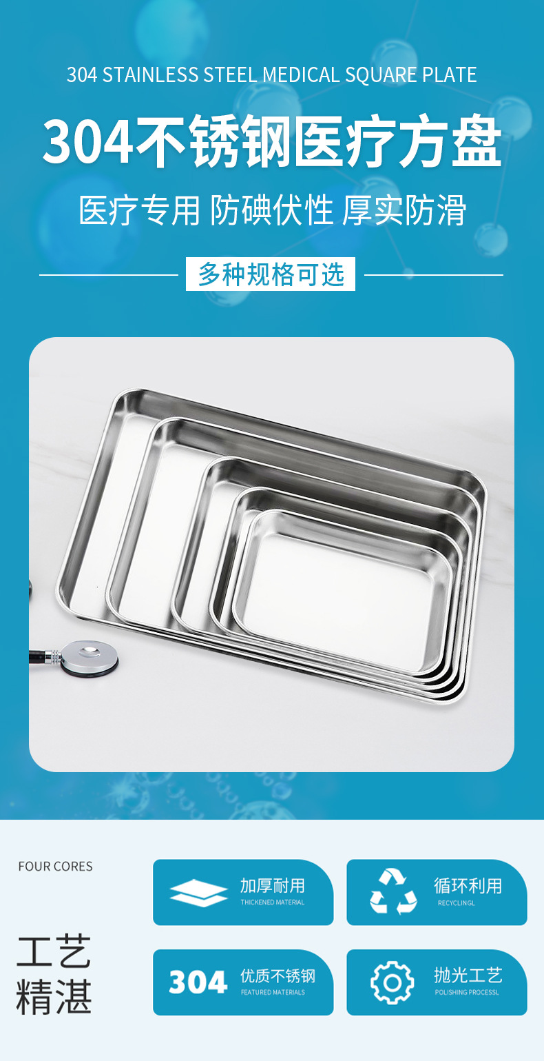 304 스테인레스 스틸 의료 사각 트레이 의료 트레이 미용 살롱 소독 트레이 수술 트레이 드레싱 변경 계기 트레이 안티 요오드포
