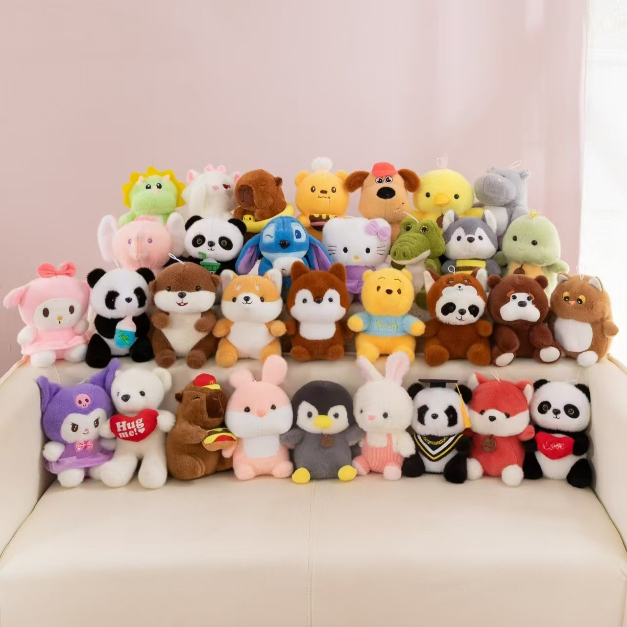 商品名称:混批卡通动物。可选尺寸。尺寸:8~10厘米,12~15厘米,18~20厘米精品,20厘米拉毛,18~20厘米次精品,23~30厘米八寸,20~25厘米简8寸。4寸毛绒大挂件。内里填充pp棉,用途:儿童玩偶,活动礼品,婚礼抛洒,娃娃机娃娃等。