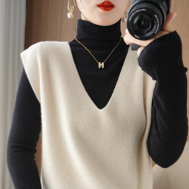 니트 조끼 여성 조끼 V 넥 풀오버 민소매 스웨터 한국식 느슨한 캐주얼 겉옷 스웨터 탑 봄과 가을 뉴스토어 가기