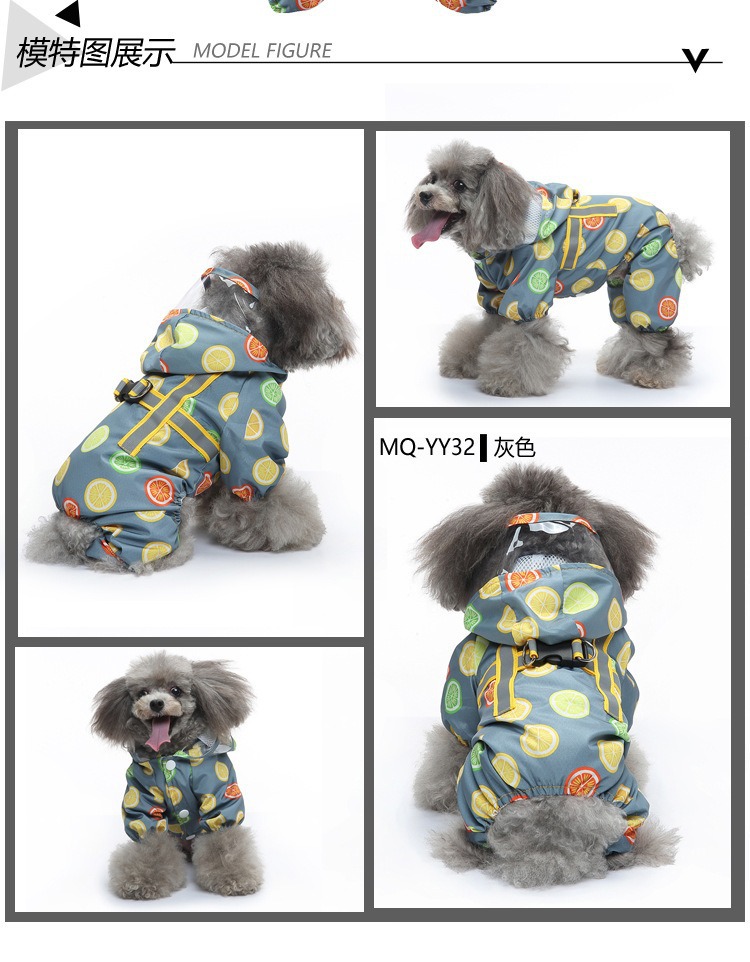 반사 스트립이 있는 재미있는 강아지 비옷, 견인 가능한 후드가 있는 방수 4발 일체형 애완동물 비옷