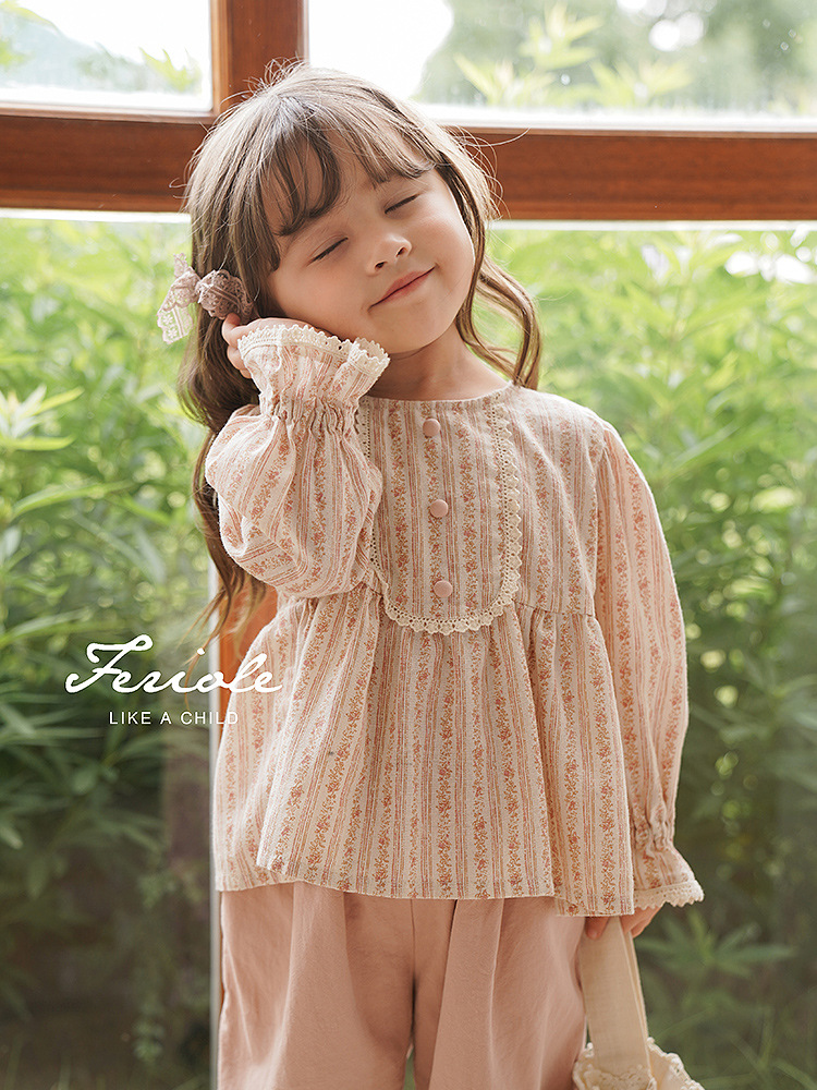 제라 아동복 여아 궁전 스타일 셔츠 2025 가을 의류 어린이 프랑스 스타일 꽃무늬 인형 셔츠 긴팔스토어 가기