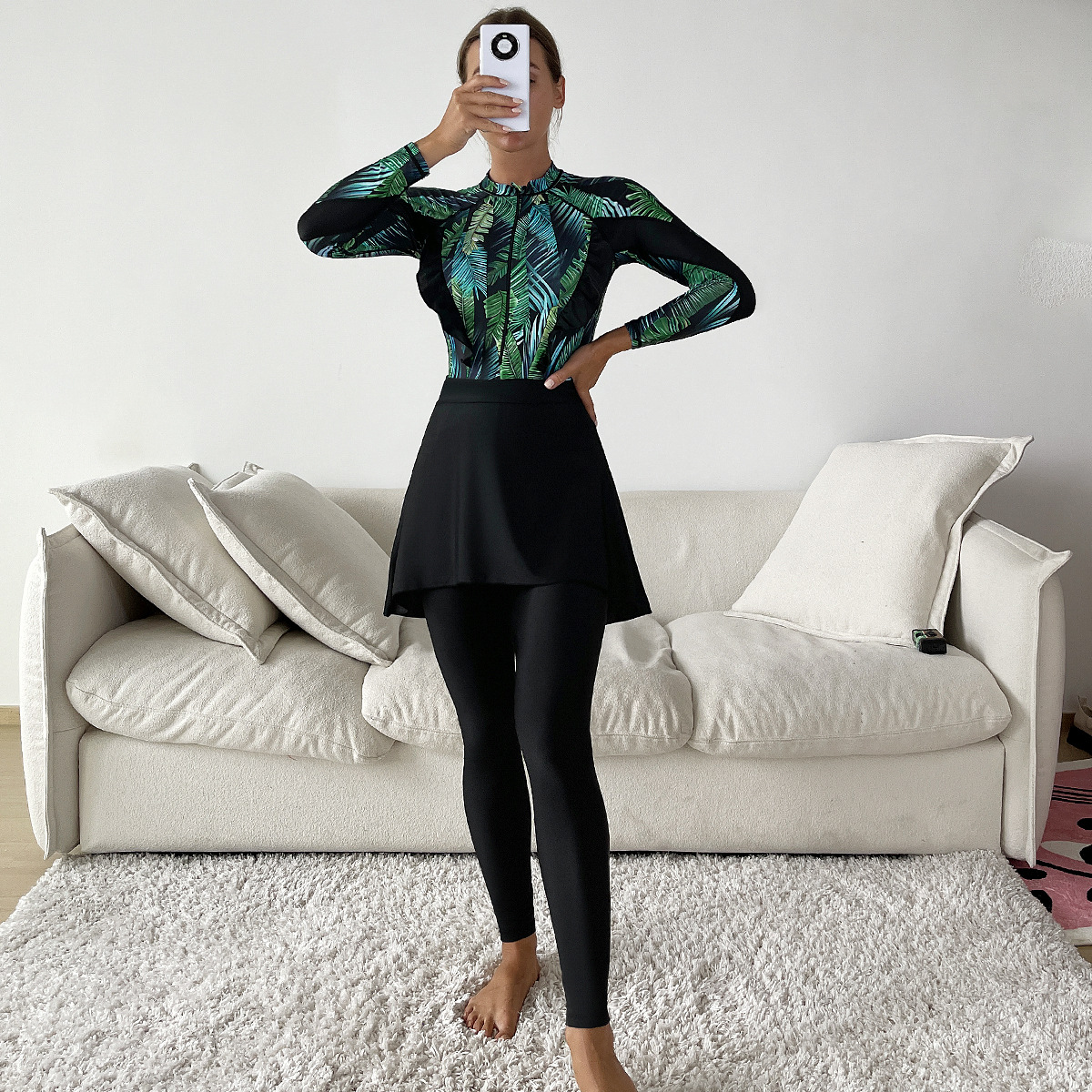 새로운 대외 무역 무슬림 수영복 긴팔 바지 3 피스 보수적 인 부르 키니 가슴 패드 모자스토어 가기