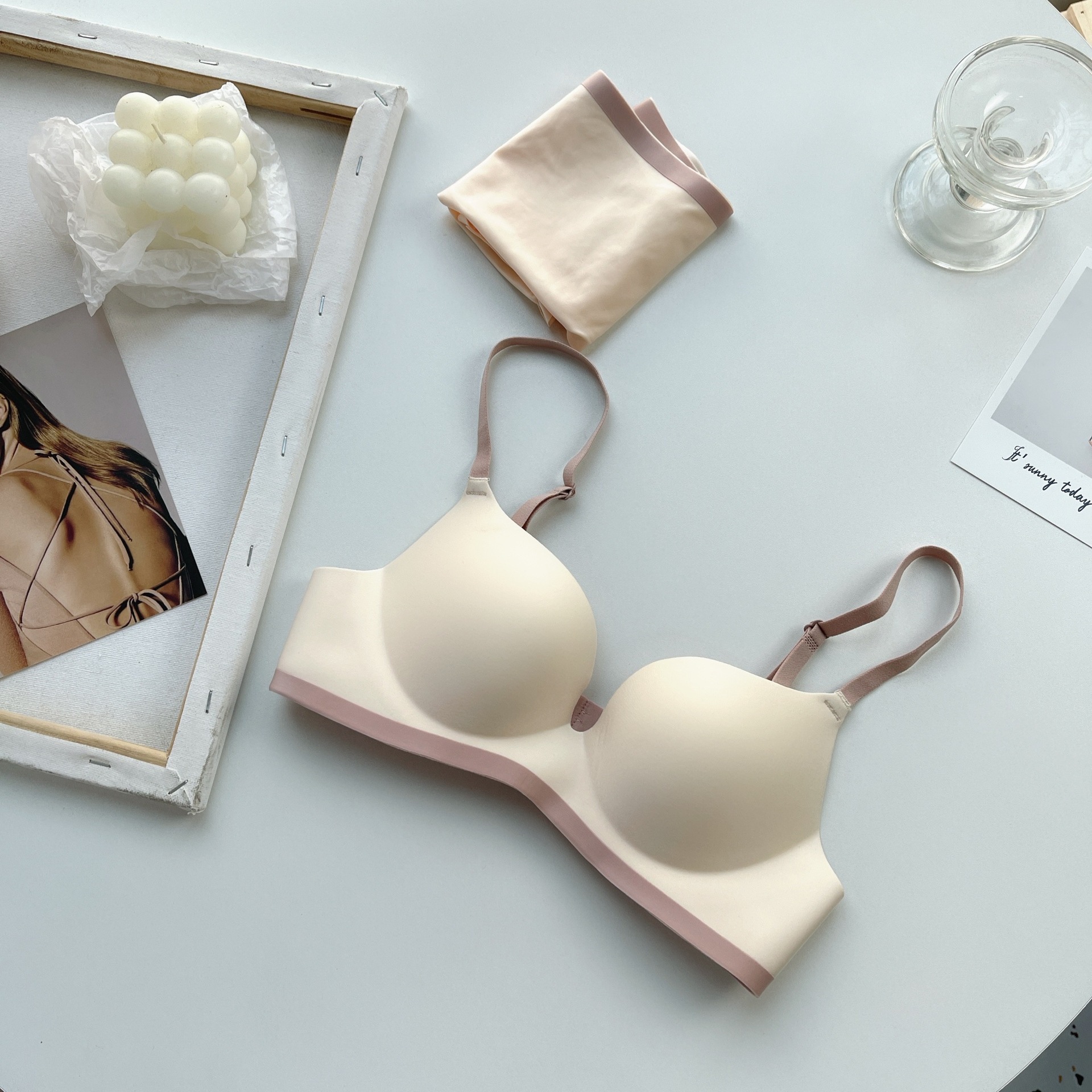 작은 가슴을 가진 여성을 위한 대외 무역 원활한 대비 색상 광택 원피스 속옷, 푸시업 및 보조 가슴, 와이어 프리 브라 도매스토어 가기