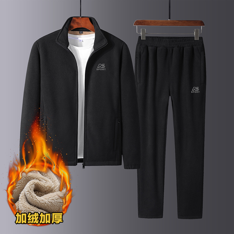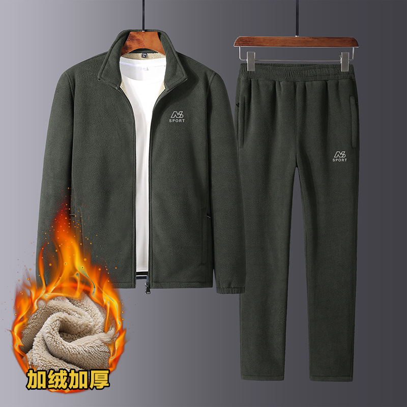 아빠 옷 세트 남자의 가을과 겨울 양털 재킷 코트 중년 및 노인 폴라 양털 두꺼운 캐주얼 양고기 양털 세트