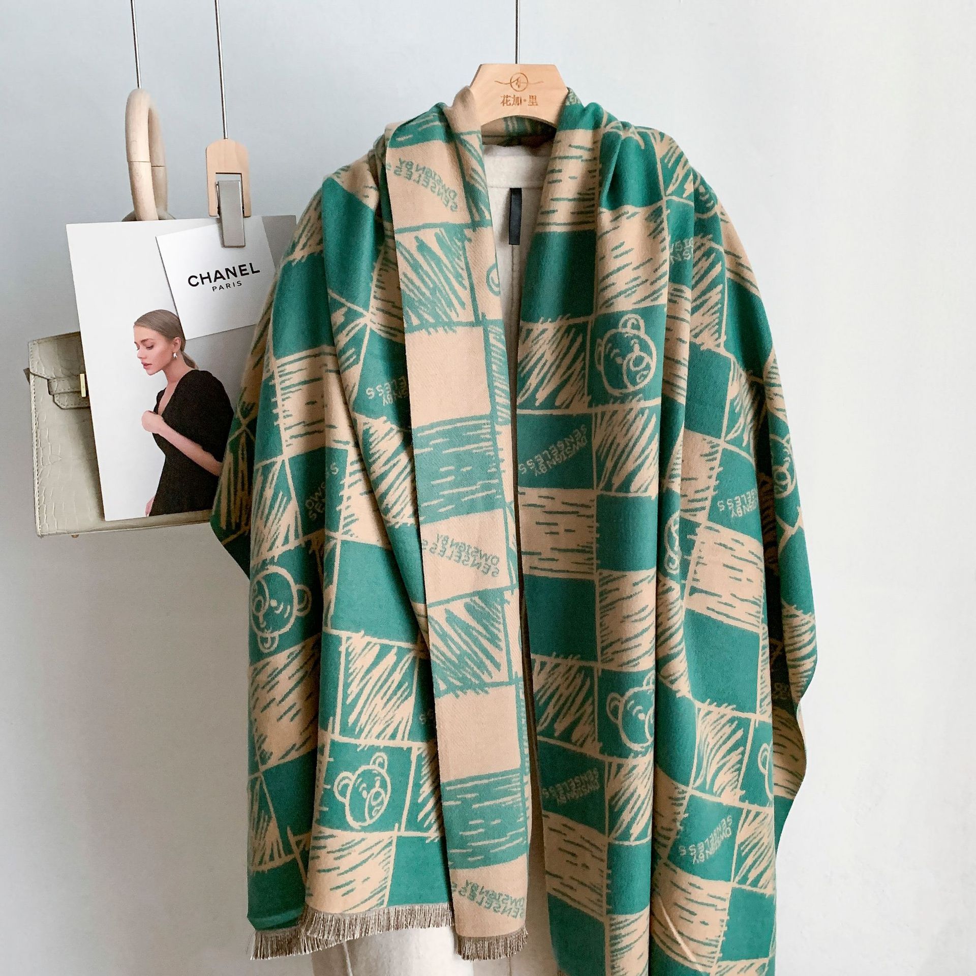 한국 스타일 모조 캐시미어 스카프 여성용 심플 스퀘어 낙서 스카프 사무실 따뜻한 숄 모든 매치 방풍 스카프스토어 가기