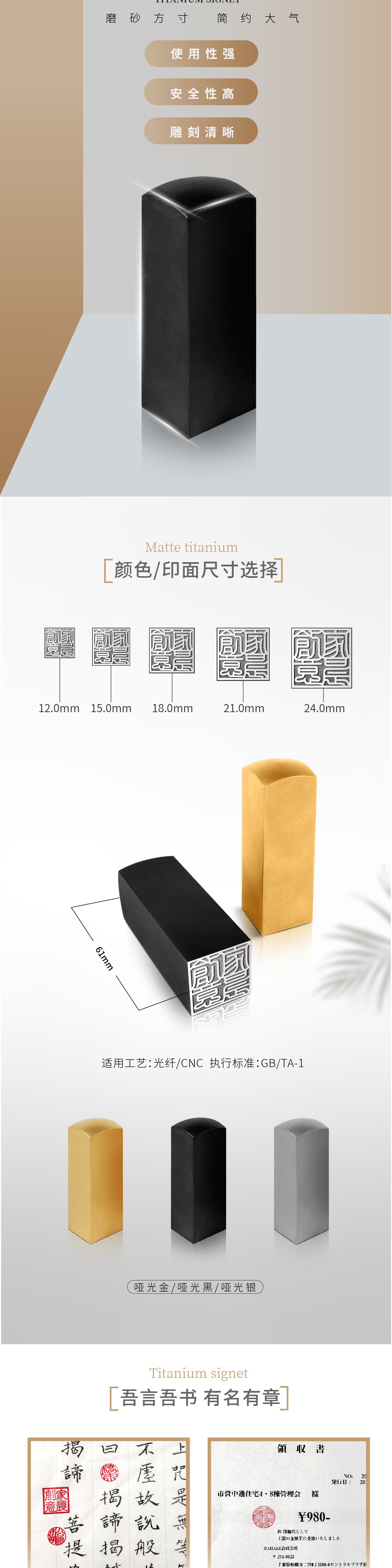 티타늄 스퀘어 네임 인감 법인인 금융인 손 계좌 서도 및 그림 수집 코너 인치 소재 도매 골드 블랙 실버스토어 가기