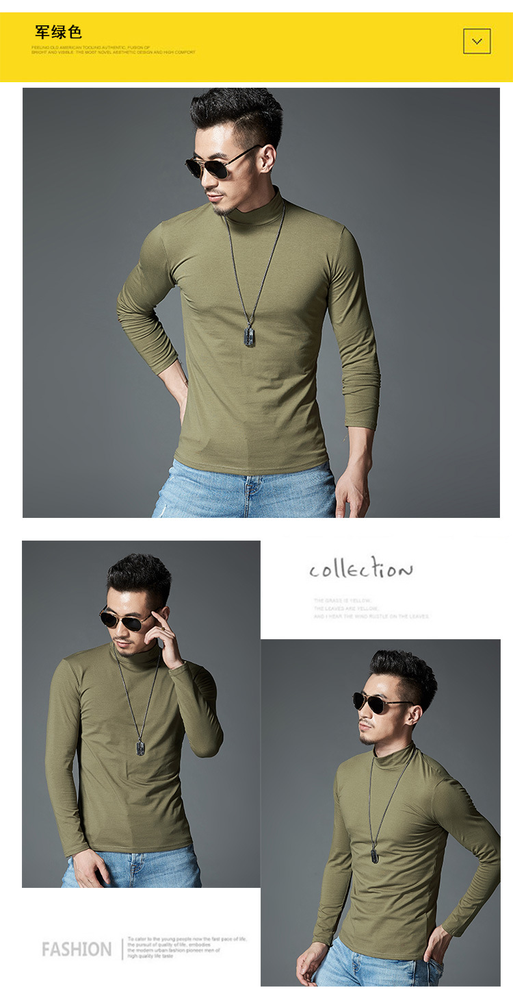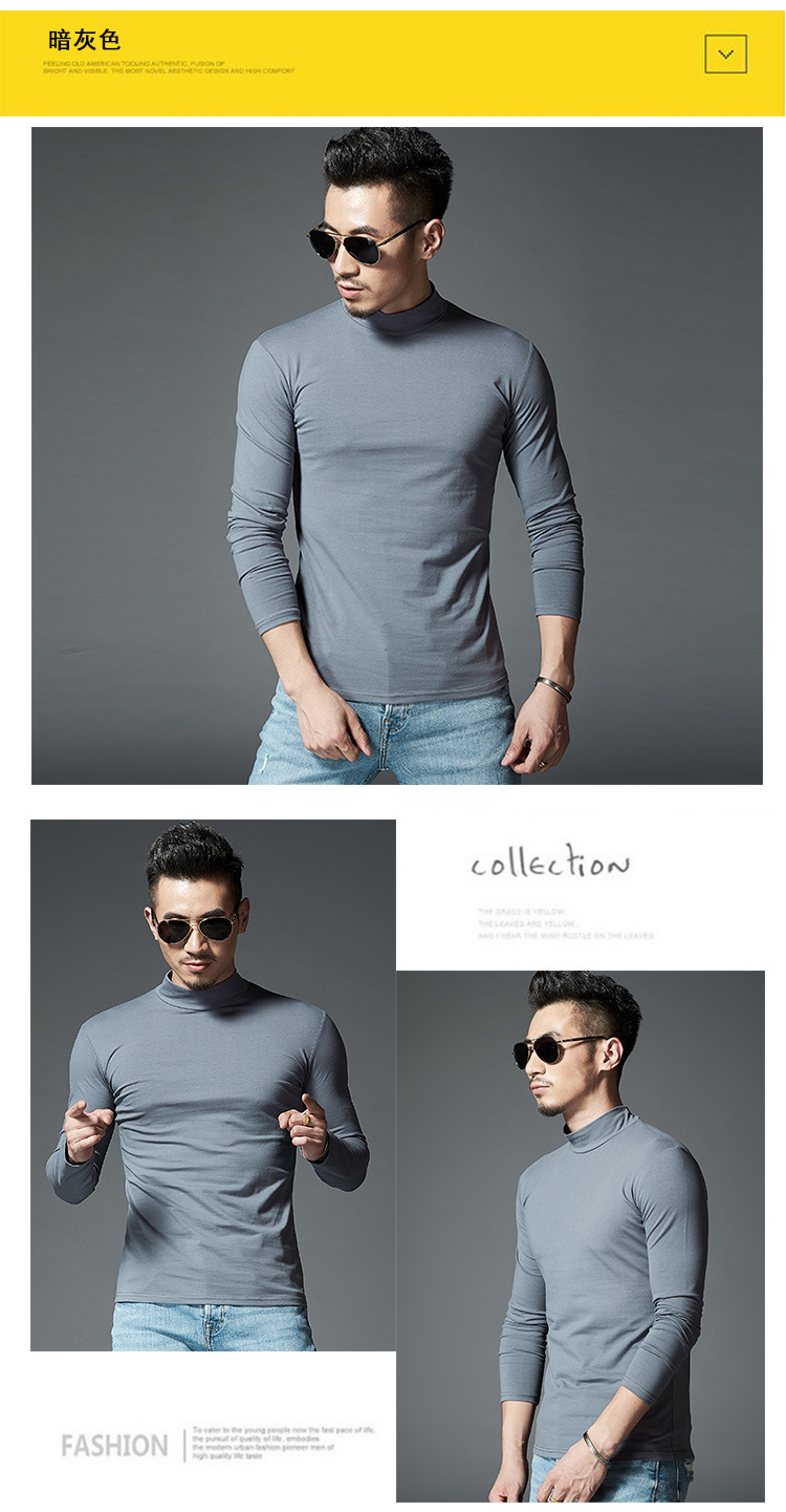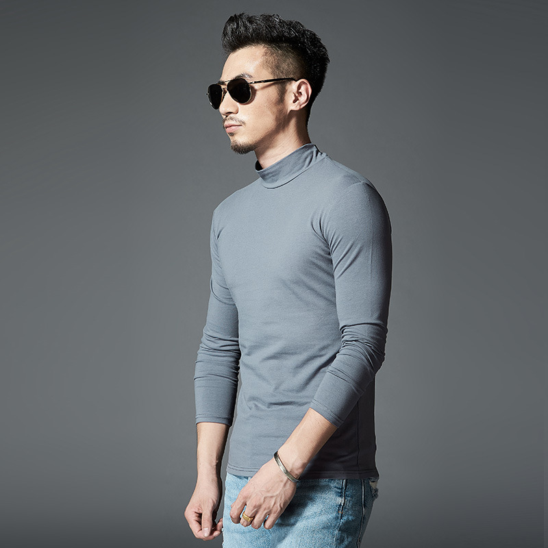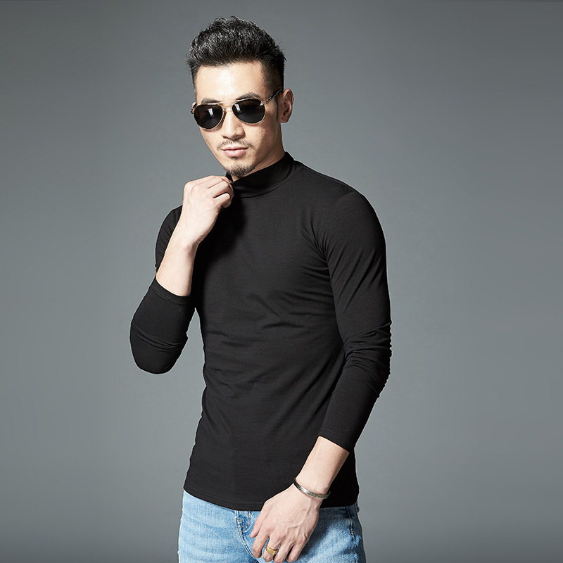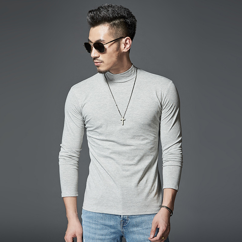 크로스 보더 남성용 가을과 겨울 중간 칼라베이스 셔츠 남성용 슬림핏 청소년 면 하이 칼라 티셔츠 긴팔 탑 티셔츠 가을 옷