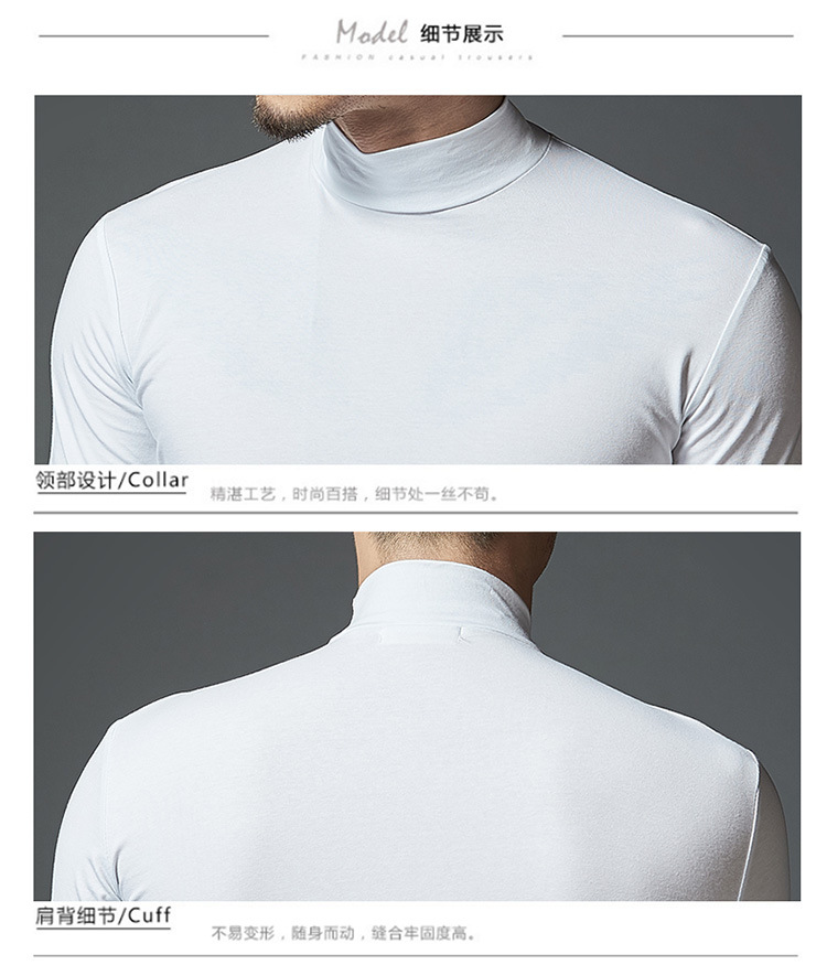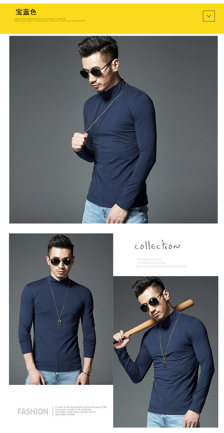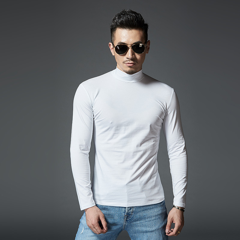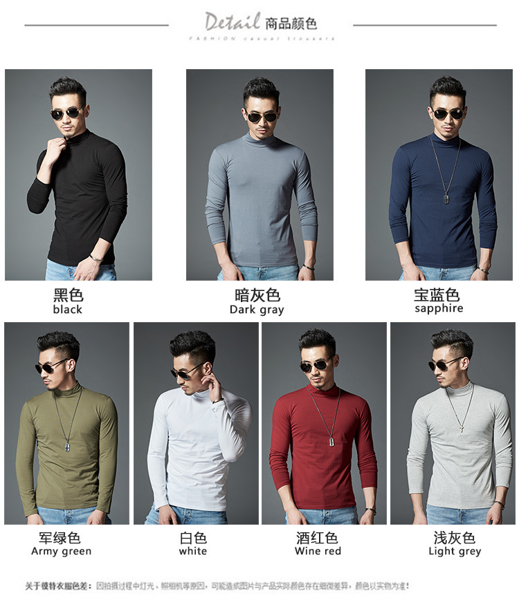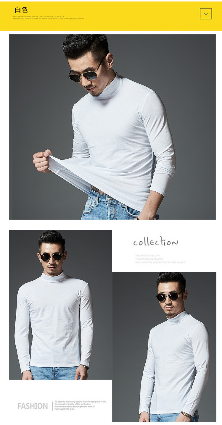 크로스 보더 남성용 가을과 겨울 중간 칼라베이스 셔츠 남성용 슬림핏 청소년 면 하이 칼라 티셔츠 긴팔 탑 티셔츠 가을 옷