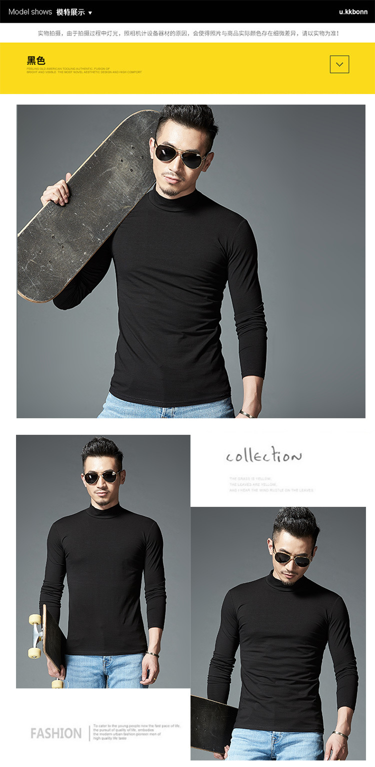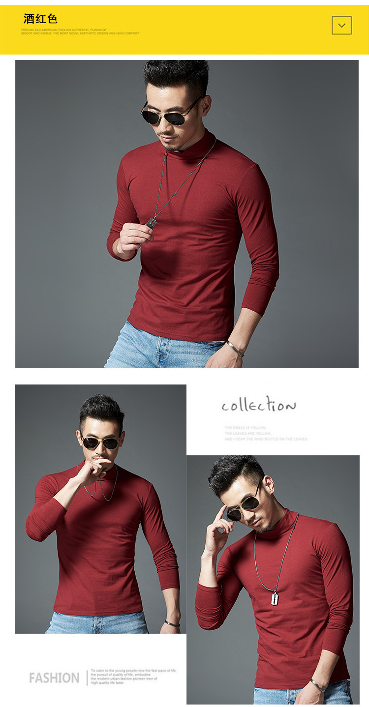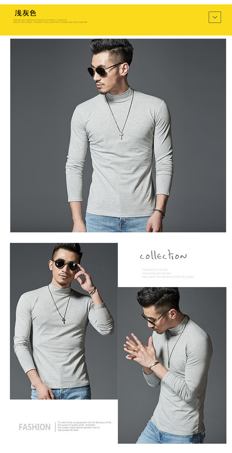 크로스 보더 남성용 가을과 겨울 중간 칼라베이스 셔츠 남성용 슬림핏 청소년 면 하이 칼라 티셔츠 긴팔 탑 티셔츠 가을 옷스토어 가기